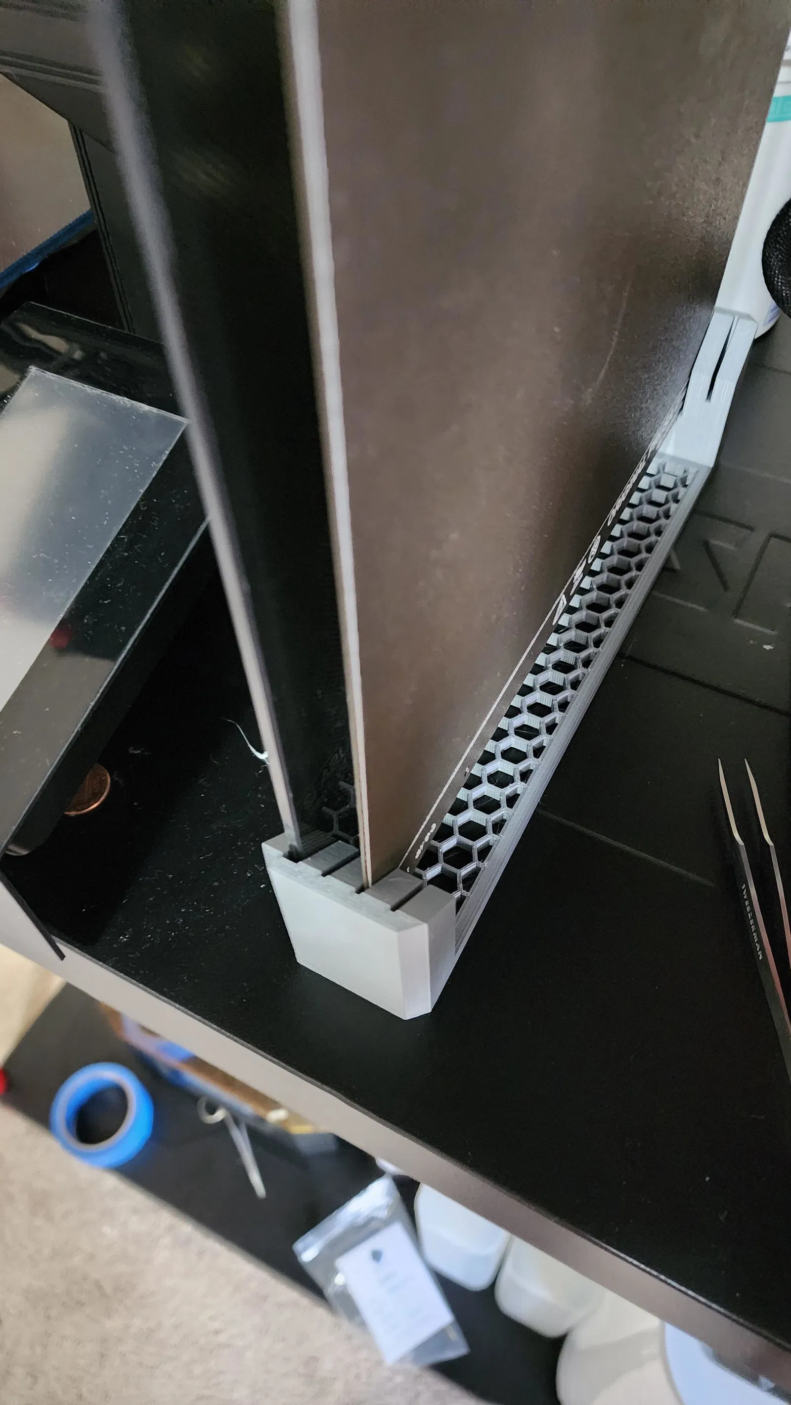 Khe dưới cùng đã được làm rộng ra khoảng 4.4mm để phù hợp với các tấm kính in như trên máy Creality, một phụ kiện hữu ích cho người dùng Prusa và Creality.