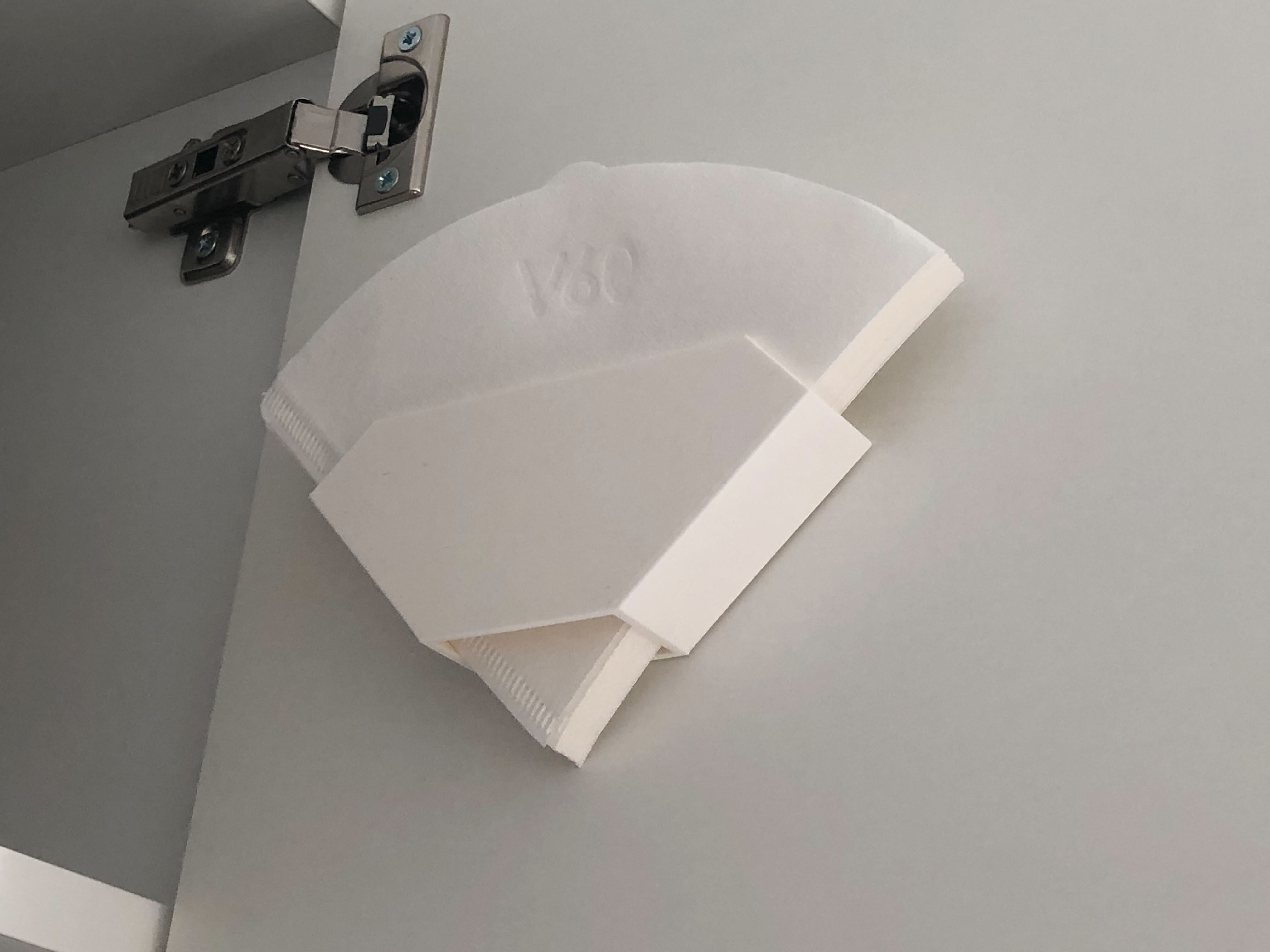 Một cái giá đỡ giấy lọc cà phê đơn giản, làm theo kiểu giấy lọc Hario V60. Tao khuyên nên in đứng để tiết kiệm vật liệu và thời gian in. Dùng băng keo hai mặt để cố định, tiện lợi lắm luôn.