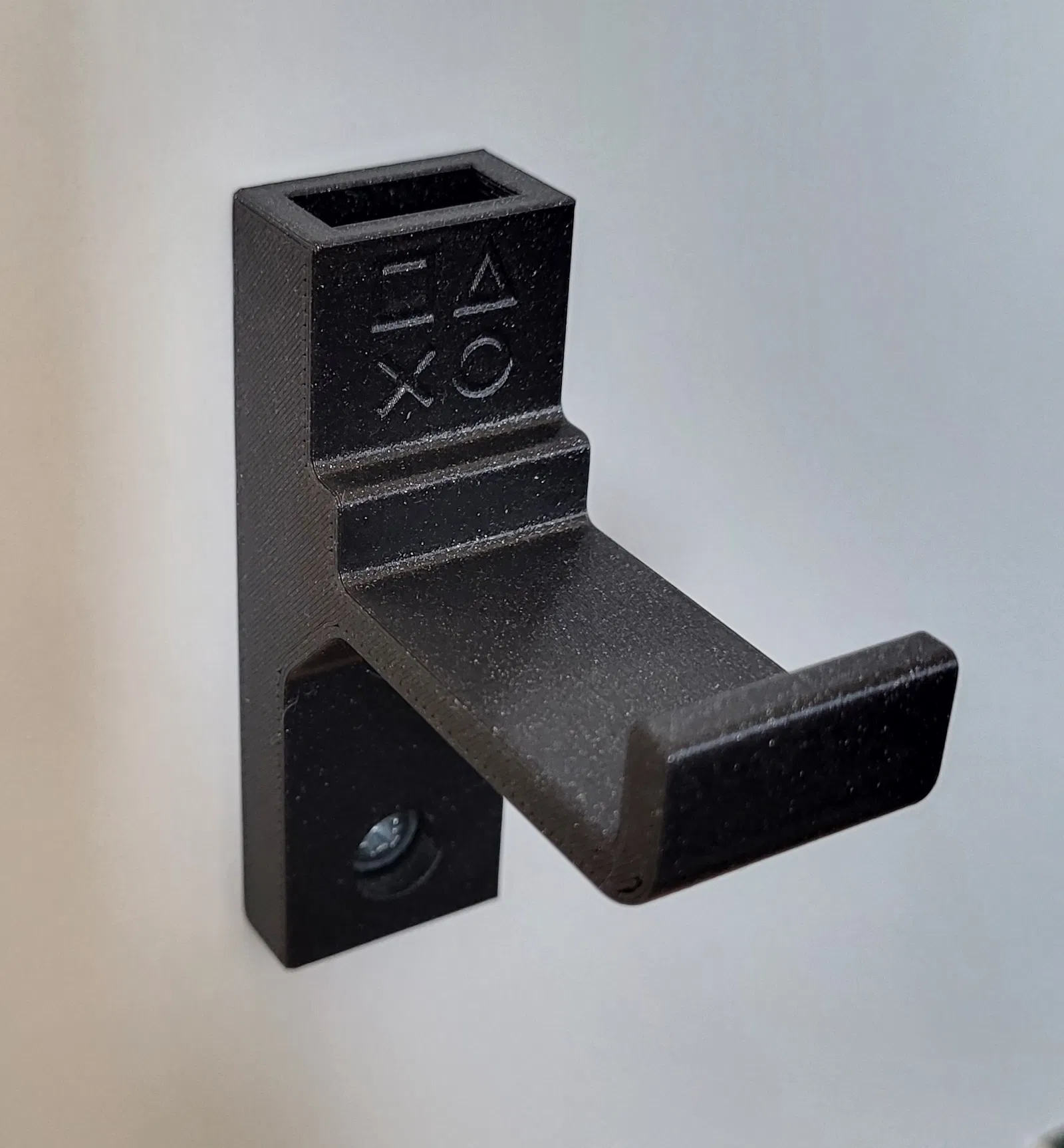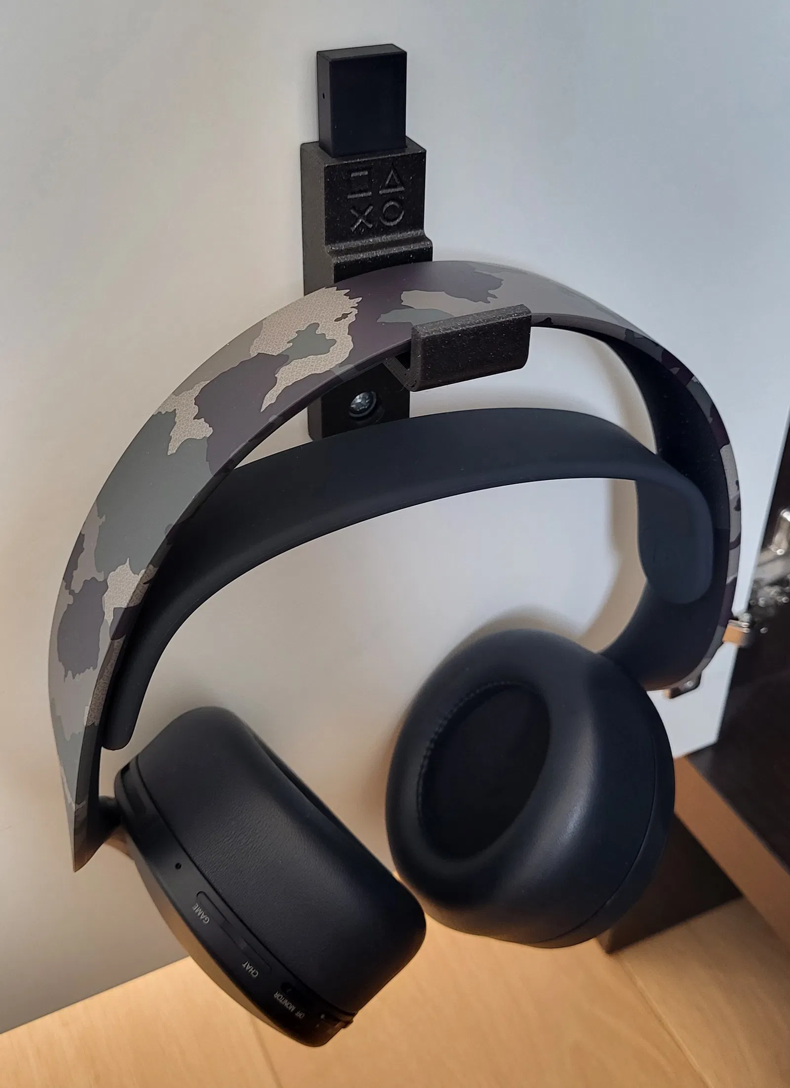 Giá treo tường Playstation Pulse 3D dùng để đựng tai nghe và USB stick. Chất liệu in là PLA, không cần support, với độ đặc 30%. Sản phẩm này giúp bạn cất giữ tai nghe và USB một cách gọn gàng.