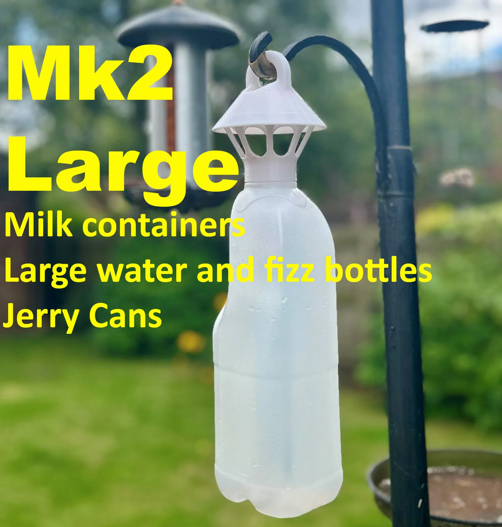 Đây là bộ phụ kiện bẫy ong bắp cày & tò vò cho các vật dụng chứa thực phẩm gia dụng thông thường (bỏ đi). Chúng sẽ khớp với các chai nhựa đựng sữa, nước khoáng, nước ngọt có gas và can xăng (xem thông số kỹ thuật bên dưới). Các vật chứa trong suốt có xu hướng hoạt động tốt hơn vật chứa mờ đục vì côn trùng bay ra thành chai, giúp giữ chúng lại dễ hơn. Tái chế bẫy và vật chứa sau khi sử dụng.