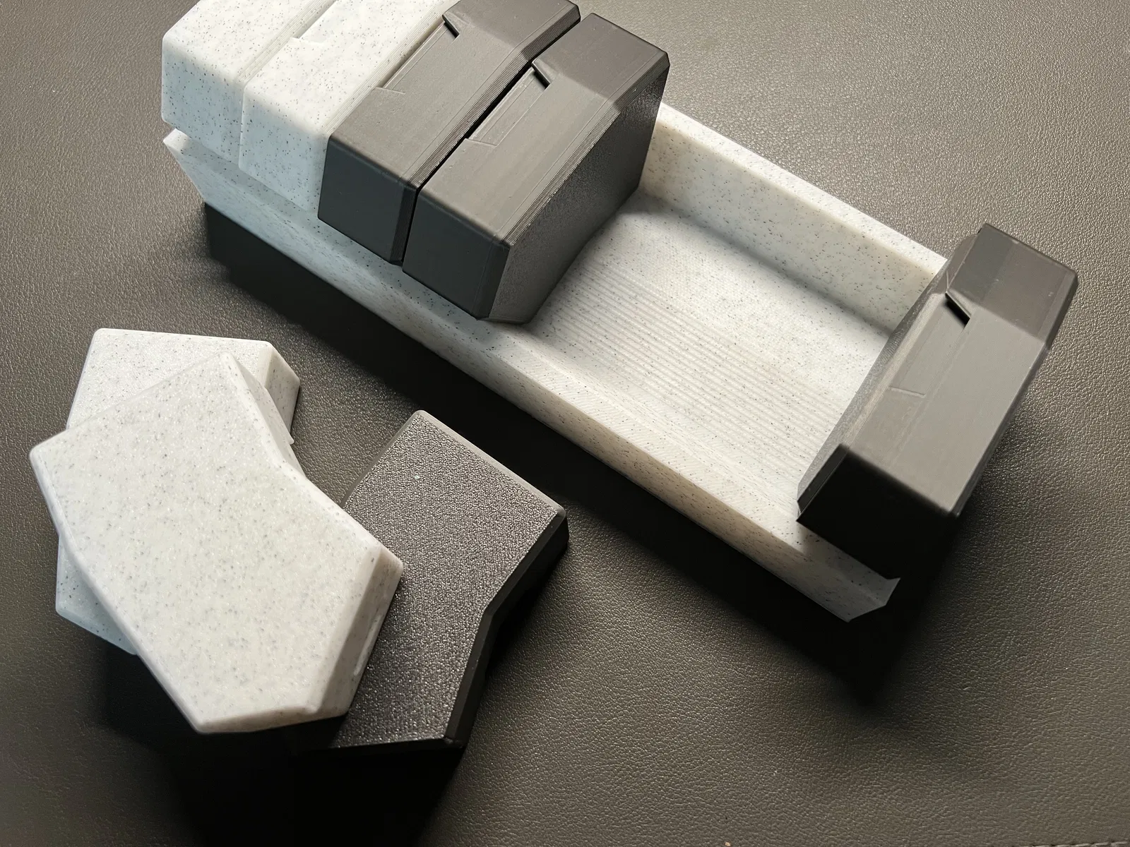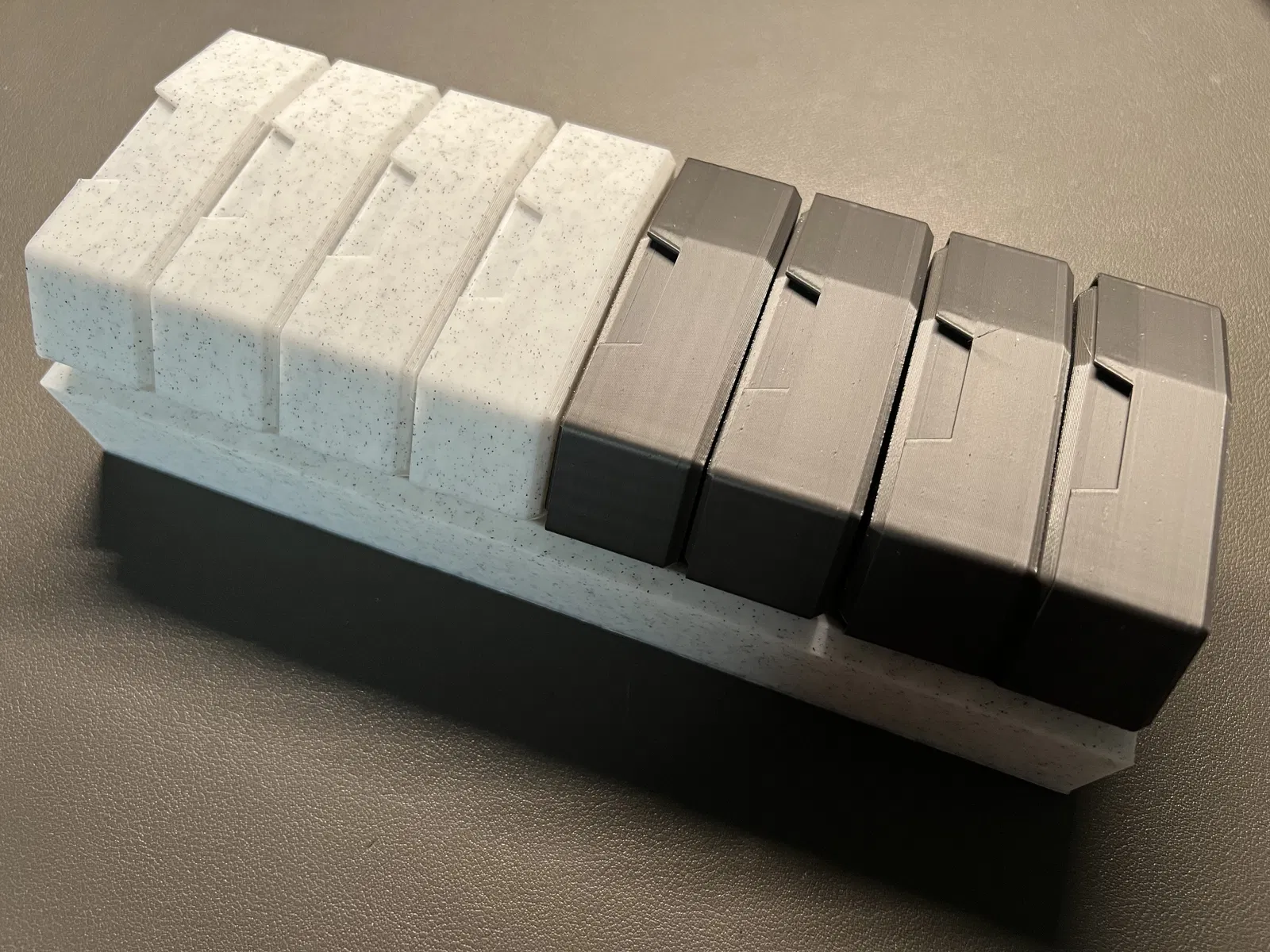 Cất giữ các hộp Duschbrocken Mini gọn gàng hơn với đế giữ này. Tui thiết kế để vừa 8 hộp, có thể tùy chỉnh độ dài để chứa nhiều hơn hoặc ít hơn. Mặt phẳng hướng lên trên giúp xếp chồng dễ dàng.