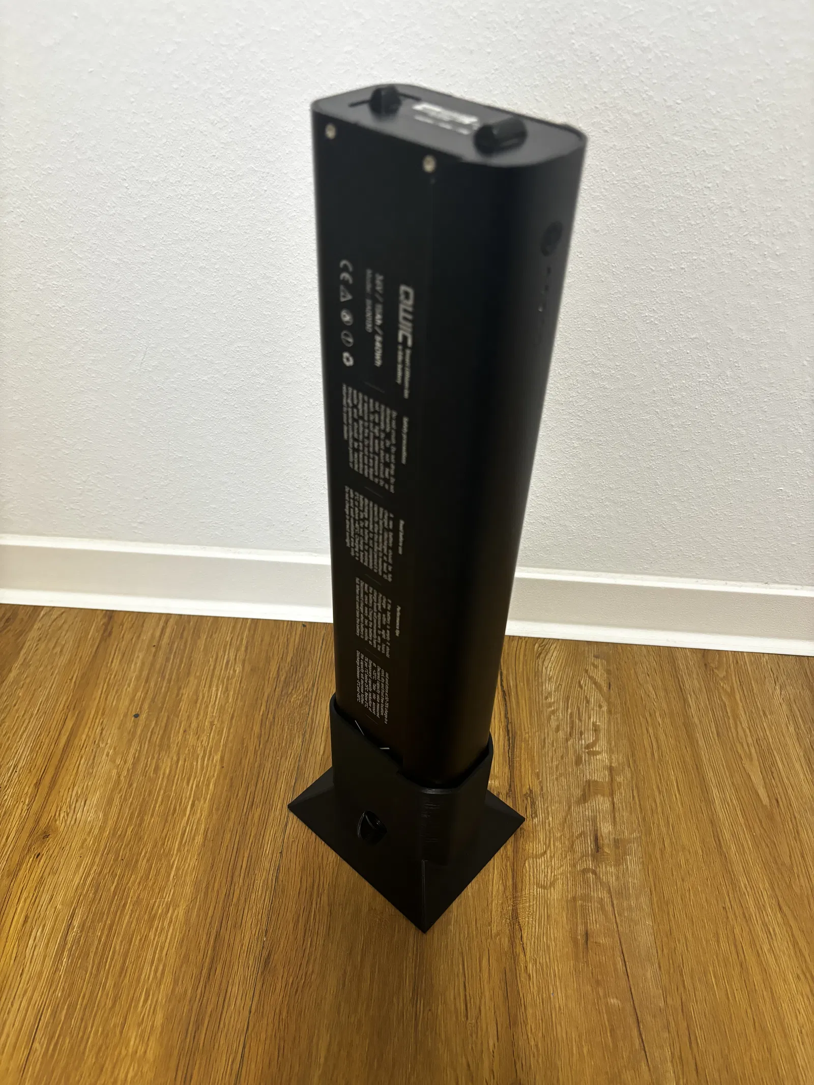 Cái đế giữ pin chắc chắn cho pin xe đạp điện Qwic (BA00130). Nhờ vậy mà bạn có thêm không gian trên bàn hoặc bất cứ đâu để sạc pin.