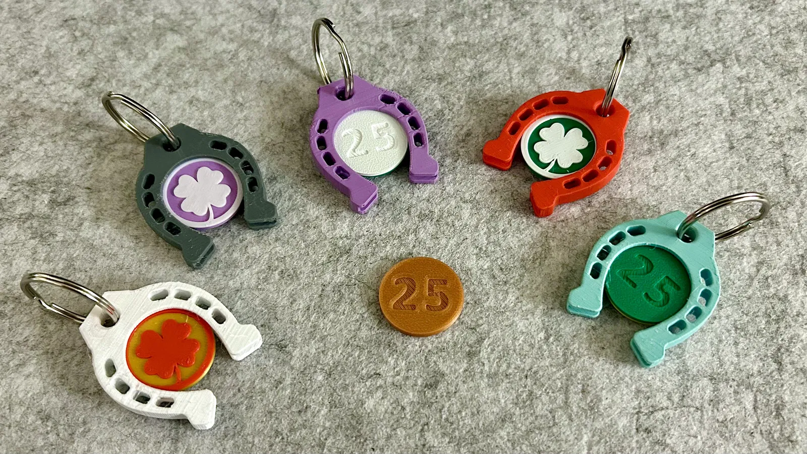 Đồng xu đi kèm với móc khóa móng ngựa này có thể dùng làm thẻ giữ chỗ cho bất kỳ xe đẩy siêu thị nào. Một mặt của đồng xu là cỏ ba lá, mặt còn lại là số 25 tượng trưng cho năm 2025.