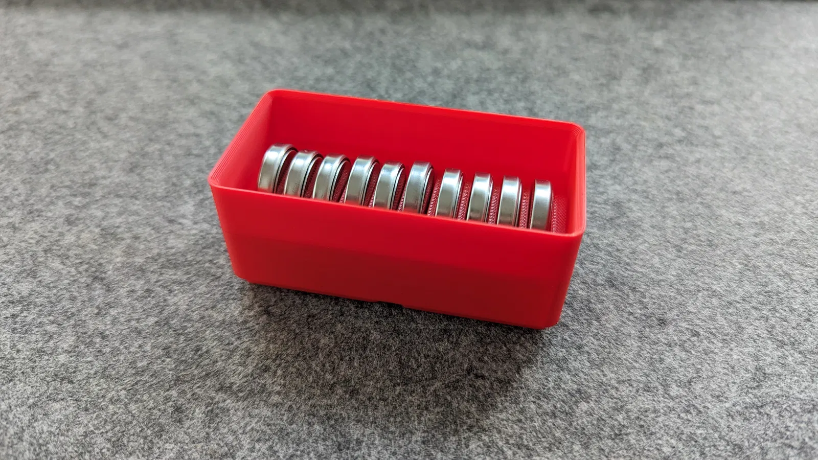 Lưu trữ gọn gàng 10 viên pin cúc áo CR2450 với mô hình Gridfinity này. Giải pháp hoàn hảo cho không gian làm việc của bạn.