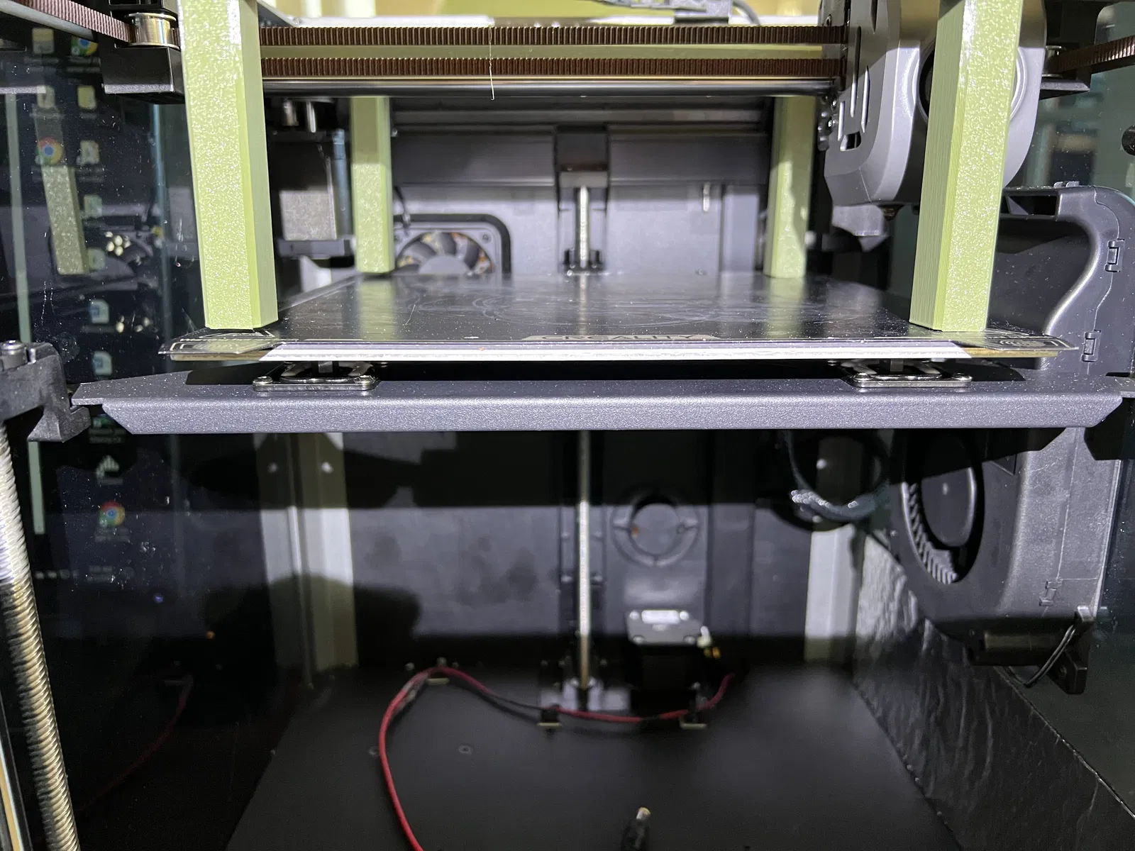 Khi thực hiện quy trình cân thủ công, tôi đã lật ngược máy in, điều này làm cho mọi thứ dễ dàng hơn nhiều. Nếu bạn làm vậy, hãy đảm bảo bạn không ép bàn xuống vì điều đó có thể gây căng thẳng không mong muốn lên các thanh dẫn động tuyến tính trục Y thông qua việc sử dụng bộ phận gá này. Lý tưởng nhất là bạn muốn bàn chỉ vừa chạm vào bộ phận gá, chỉ với trọng lượng của bàn và không có lực bổ sung từ các thanh ren trục Z.