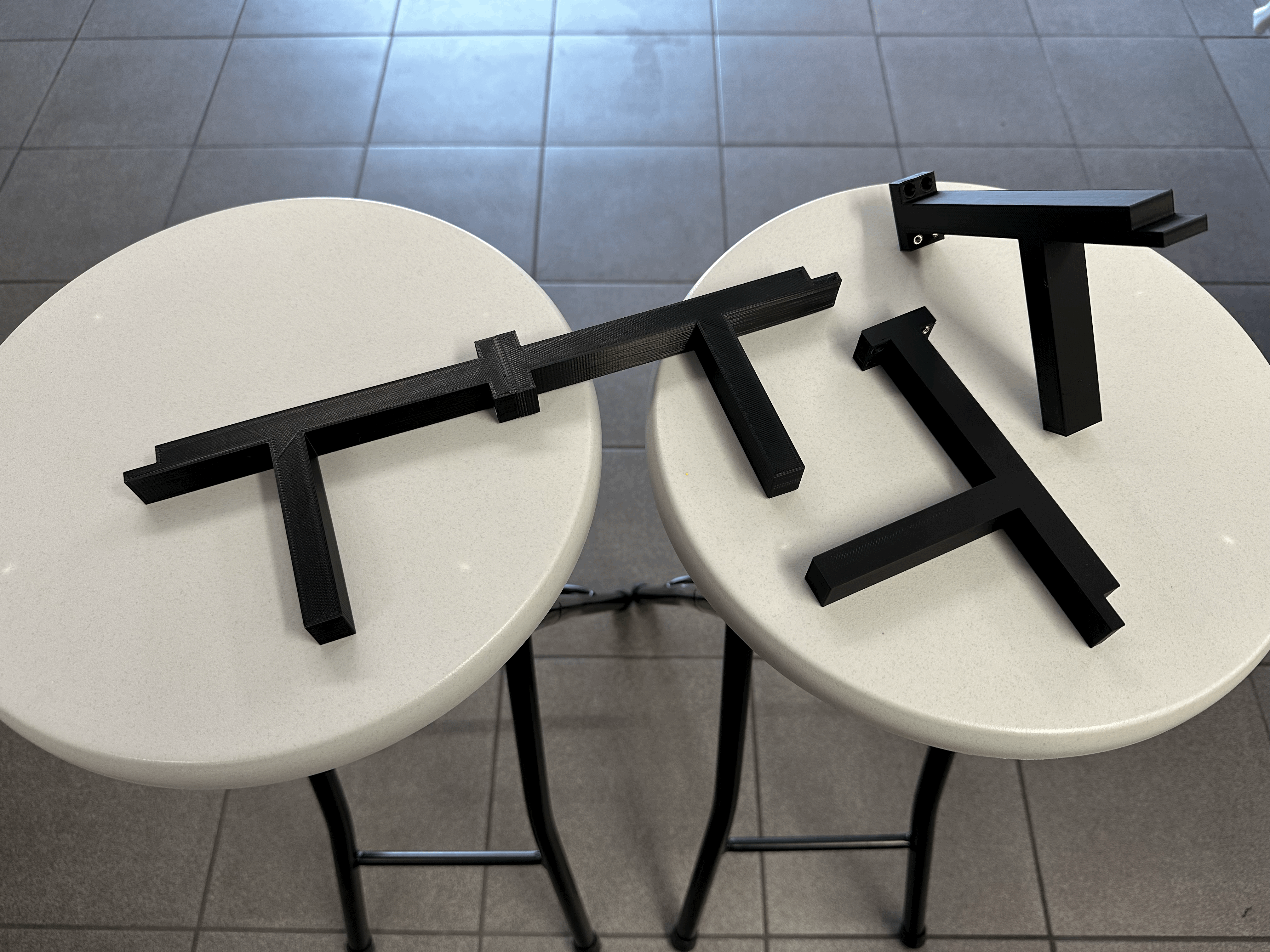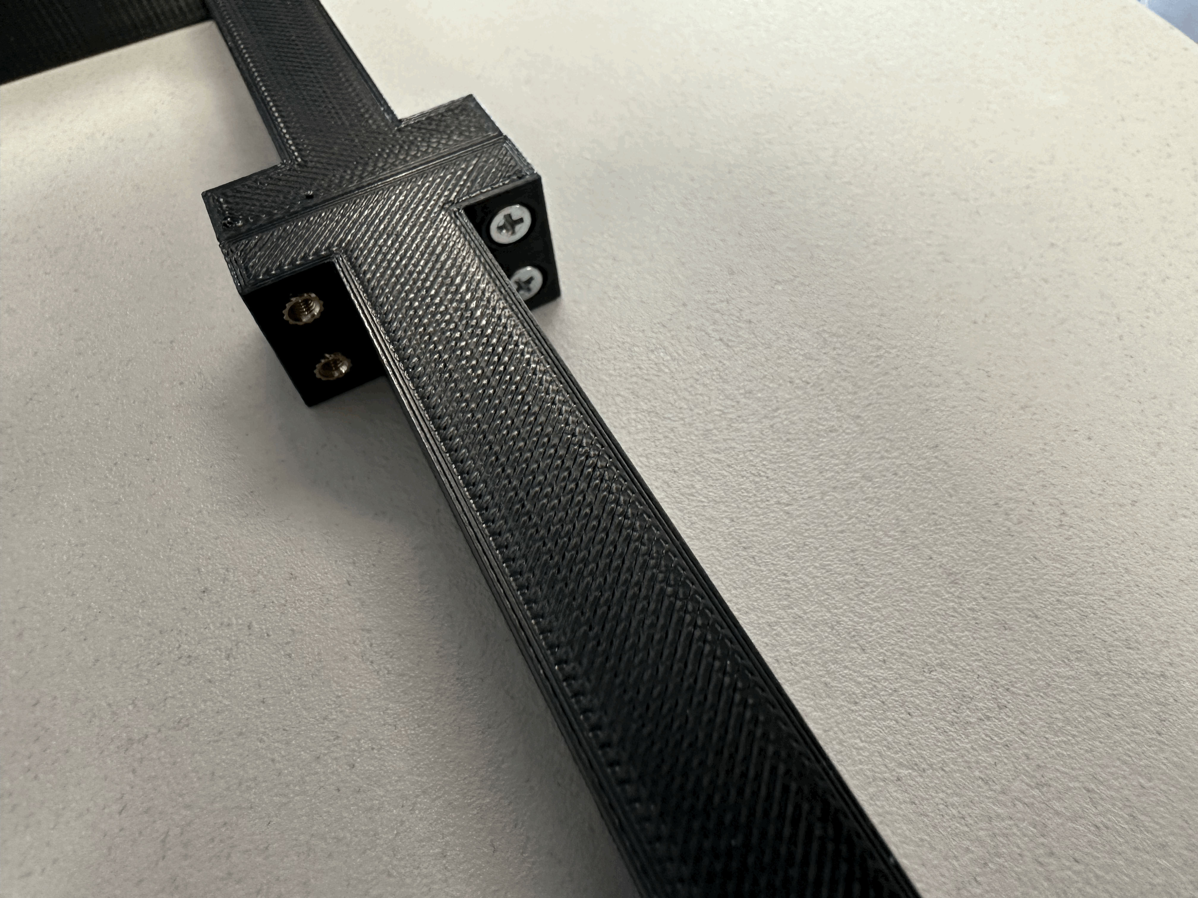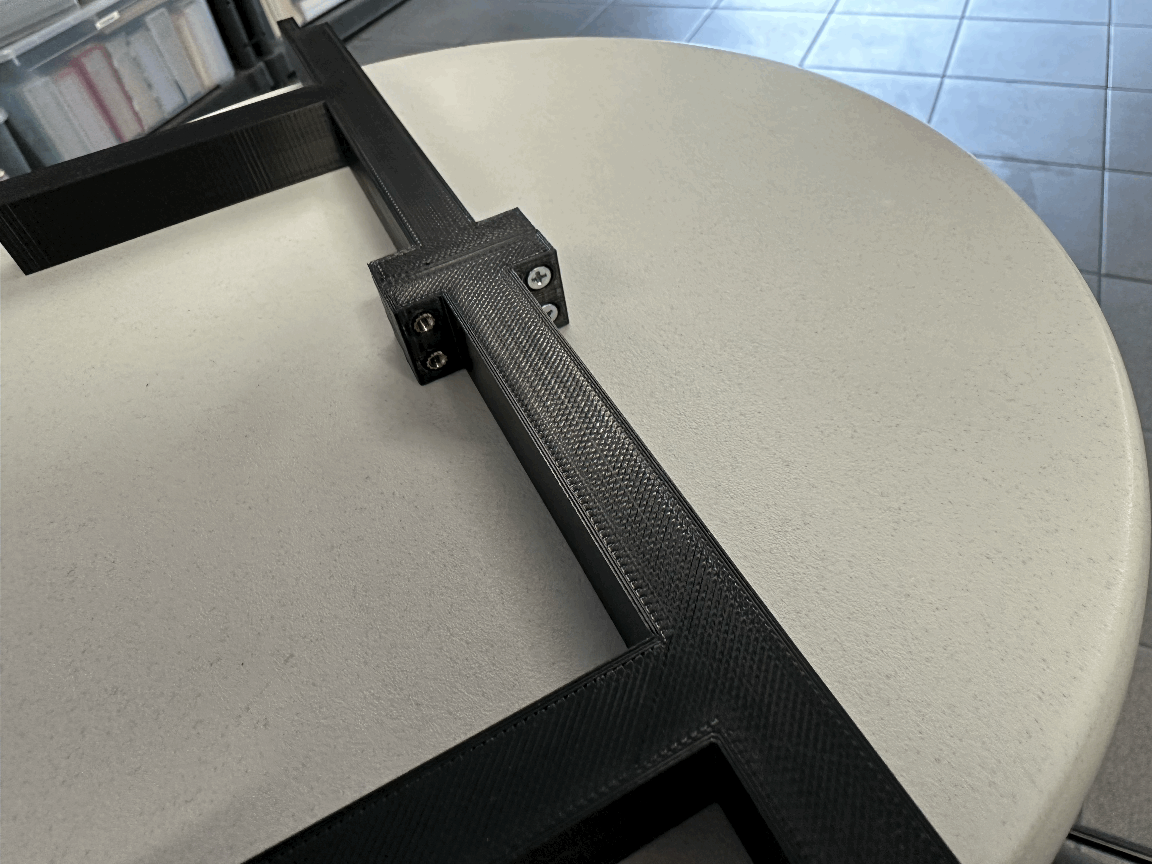 Tao đã chia cái dụng cụ này ra làm hai để nó có thể vừa với những bàn in nhỏ hơn. Để nối lại, bạn cần dùng đai ốc kiểu M3 (fusible nuts) và ốc M3. Hoặc bạn có thể dùng đai ốc M3 thông thường ở mặt đối diện.