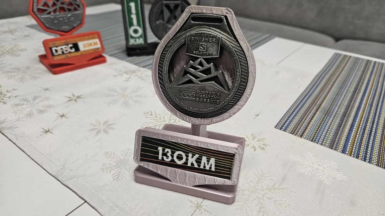 Kệ huy chương trao tặng tại Giải chạy Địa hình Hạ Silesian (Dolnośląski Festiwal Biegów Górskich) cho cự ly 130km. Mẫu in 3D này không yêu cầu vật liệu hỗ trợ.