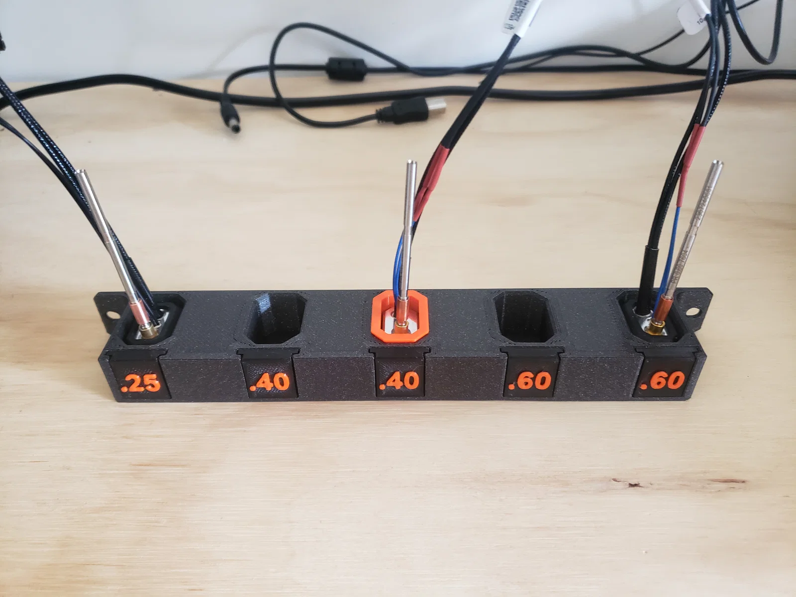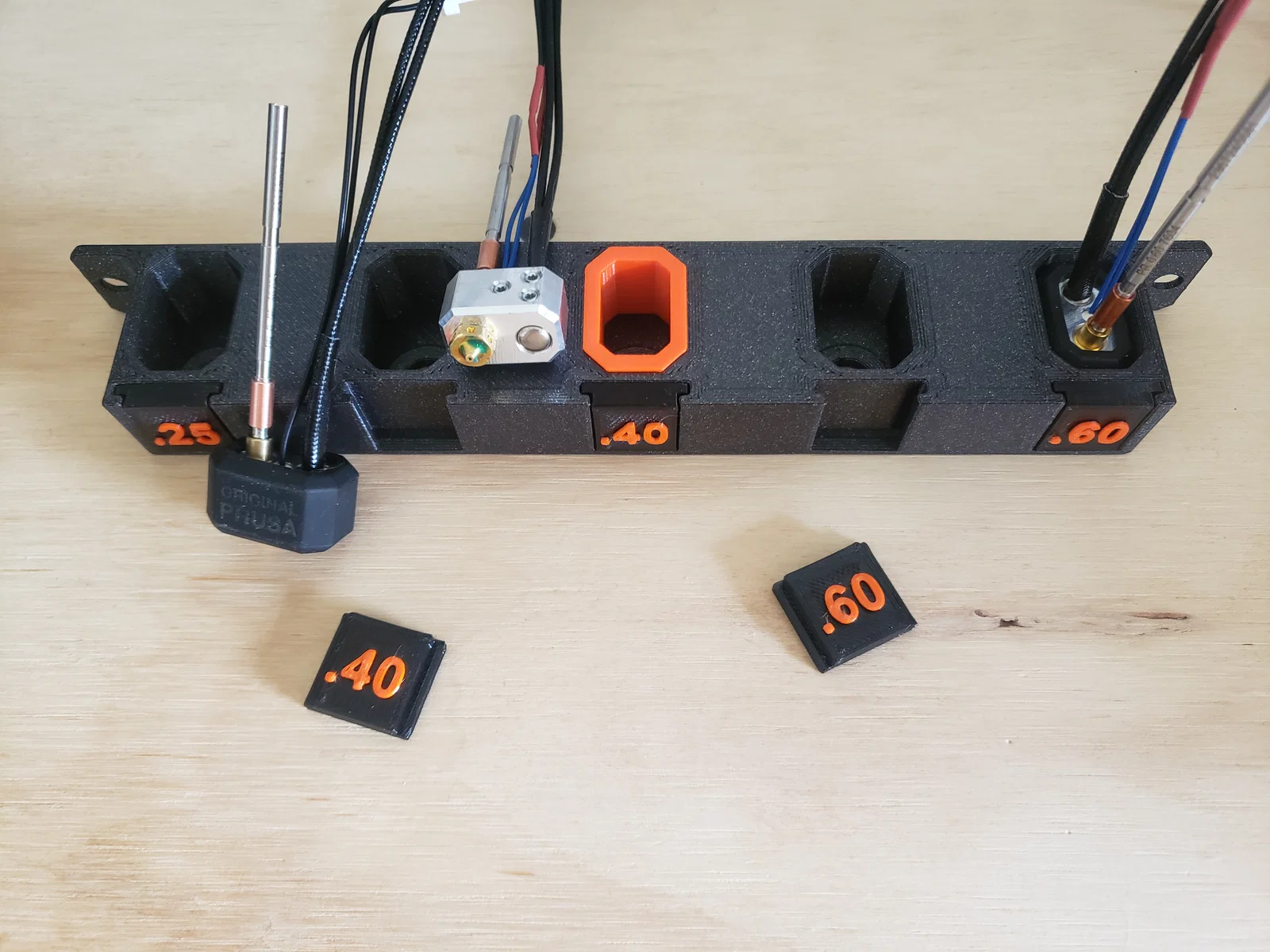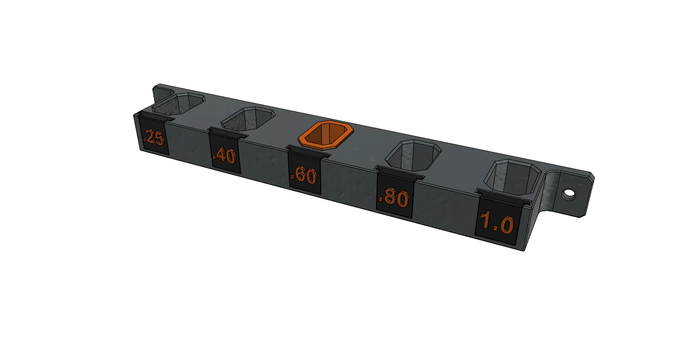 Cách đơn giản để cất giữ nhiều bộ bép phun cho hệ thống Nextruder. Thiết kế cho việc sử dụng vớ silicon, nhưng có kèm theo bộ chuyển đổi nếu bạn không dùng vớ. Ngoài ra còn có các thẻ có thể thay thế để nhận dạng bép phun.
