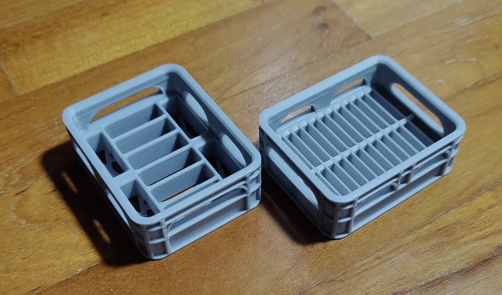 Hộp đựng pin CR2032 và CR2477 nửa chiều cao theo phong cách thùng bia. Hộp CR2032 chứa 28 pin, hộp CR2477 chứa 10 pin. Có thể xếp chồng lên nhau.