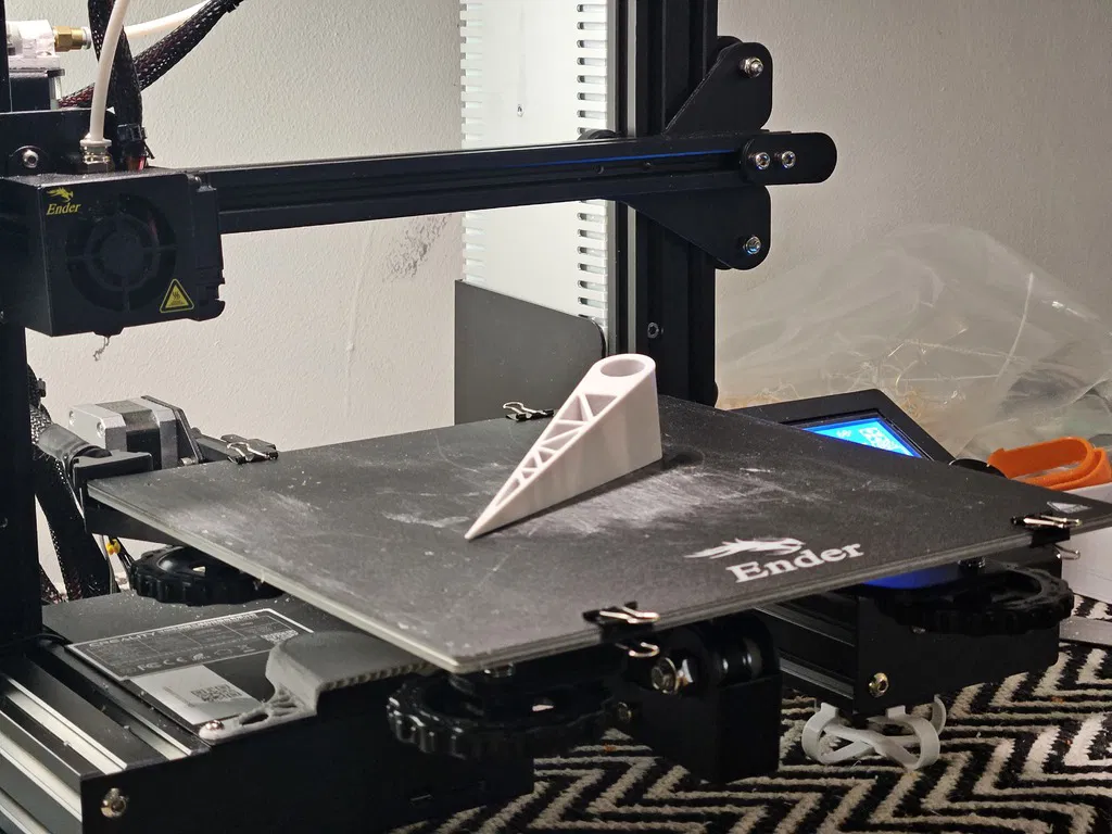 Chặn cửa hai góc được tinh chỉnh lại với góc nghiêng 15°, hoa văn low-poly giảm trọng lượng và lỗ 15mm. Cài đặt in đề xuất cho PLA trên Ender 3, không cần supports, infill 20-30% với nhiệt độ 220°C/50°C.