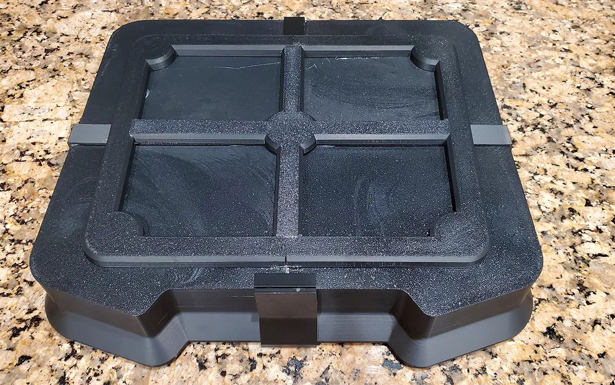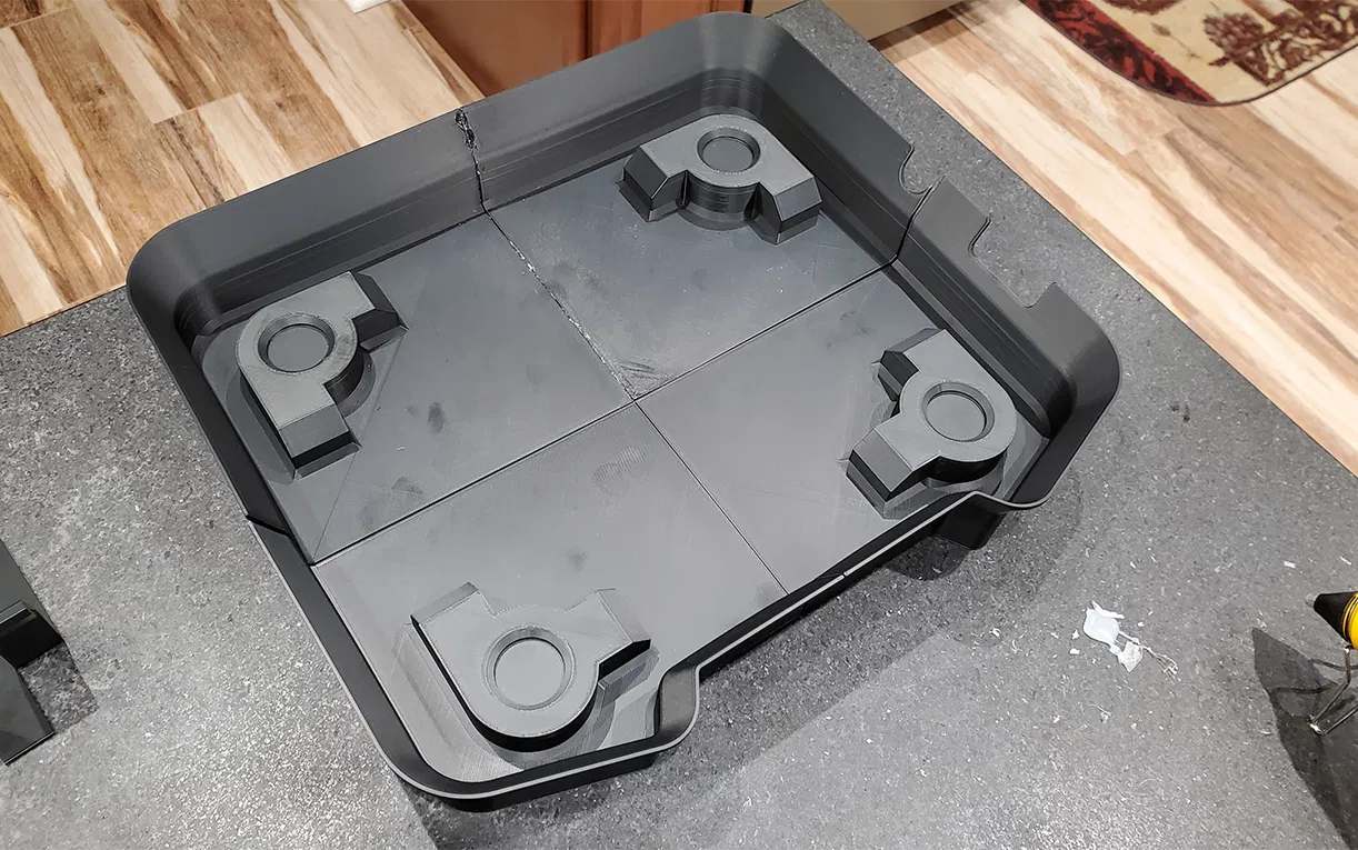 Khay hứng nhựa resin cho máy in Elegoo Saturn 3 Ultra, nơi đặt máy in Saturn 3 Ultra. Trong trường hợp khay nhựa bị rò rỉ do phim khay bị hư hại, nhựa sẽ được chứa lại. Cái này sẽ không hứng được các vết tràn do va đập, nhưng sẽ hứng được các vết rò rỉ thông thường. Sản phẩm được in 3D bằng FDA gồm 16 bộ phận và dán lại với nhau. Tôi đã sử dụng keo nóng chảy để lắp ráp, nhưng bất kỳ loại keo epoxy tốt nào cũng sẽ phù hợp. Bản gốc có hơi khác so với các mẫu được cung cấp, vì tôi đã cải tiến mô hình dựa trên kinh nghiệm lắp ráp bản gốc. Mục tiêu khi dán là để kết dính, nhưng hãy cẩn thận đừng tiết kiệm, vì mục tiêu ở đây là làm kín chất lỏng. Phòng bệnh hơn chữa bệnh!. Thật không may, phần lòng khay chính phải in thành 4 phần vì nó quá lớn để in một lần. Khi dán bằng các dây đai nối, nó sẽ kín nước. Tôi đã cung cấp các tệp Bambu Studio và tệp STP cho tất cả các bộ phận lắp ráp mô hình. Vui lòng xem PDF đính kèm để có hình minh họa cách các bộ phận khớp với nhau. Bảng trong PDF sẽ cung cấp ước tính thời gian in cho từng bộ phận. LƯU Ý..Tôi không có các mẫu máy in Elegoo Saturn khác, vì vậy tôi không biết liệu cái này có hoạt động cho các máy khác hay không. Tôi tin rằng Saturn 3 sẽ tương thích, nhưng vui lòng kiểm tra dấu chân và bố cục trước.