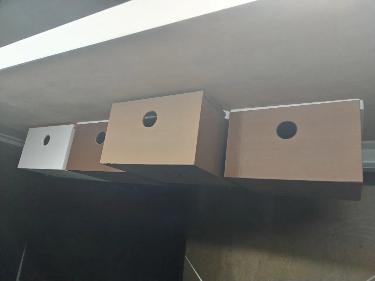 Tận dụng khoảng trống trên cao trên kệ bằng cách tạo ra cái hộp treo độc đáo này. Thiết kế với khe hở 6mm có chủ đích và các cạnh bo tròn giúp việc lắp đặt trở nên dễ dàng hơn. Phiên bản V2 còn có thêm mái che tiện lợi.