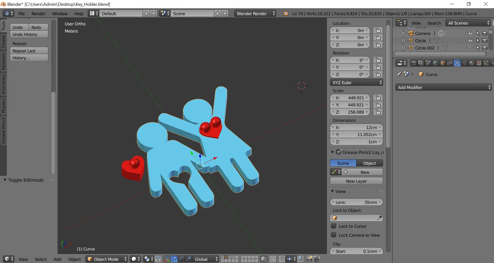 Thiết kế: Như thường lệ với mình bây giờ - phần mềm Blender & Illustrator SWG. Bắt đầu với Illustrator để tạo hình trái tim, hình con gái & con trai (chỉ nhanh hơn làm trong Blender) và lưu dưới dạng SWG. Import vào Blender, xử lý Mesh to Curves và đây là thành quả!