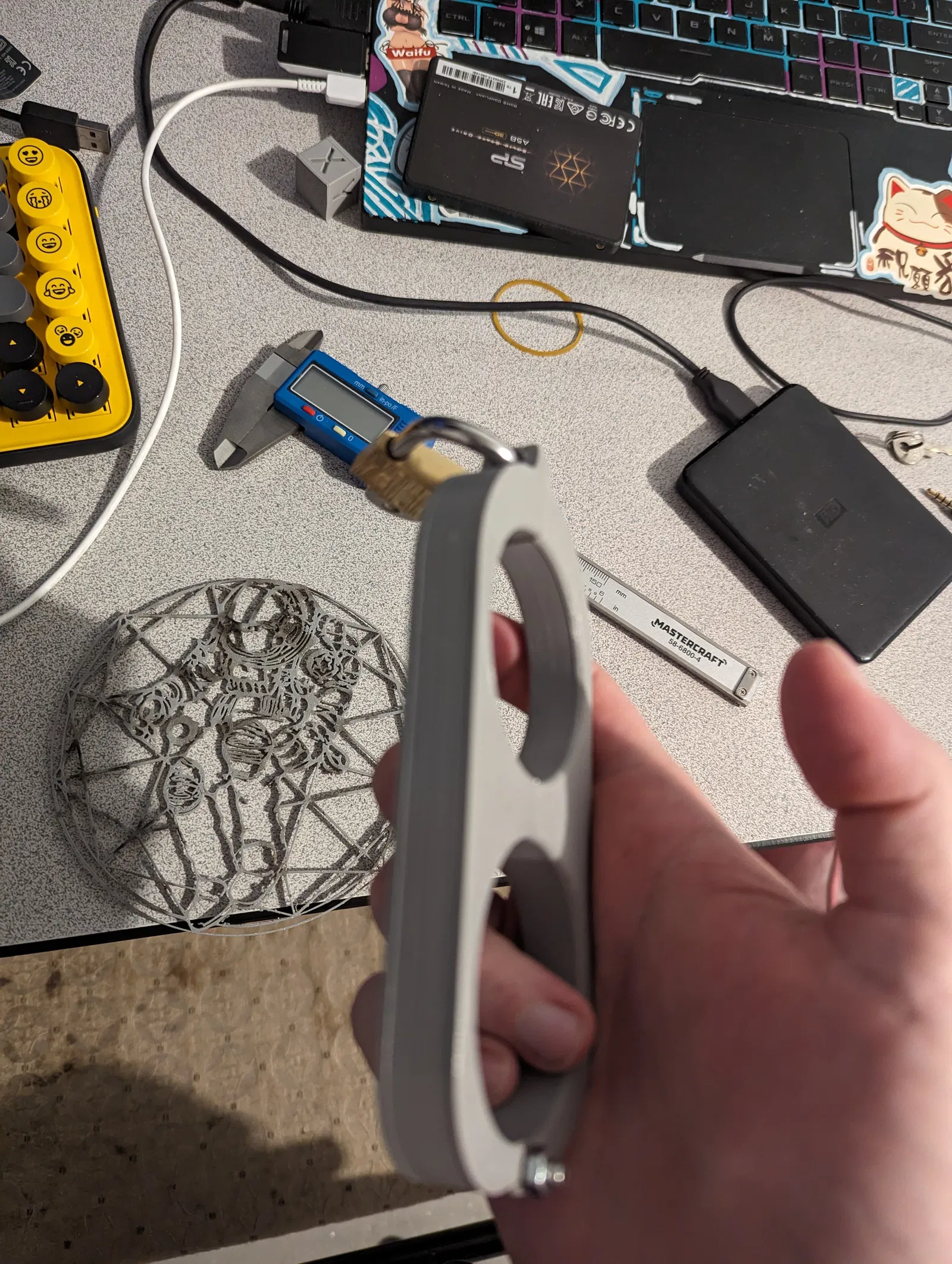 Còng tay BDSM này vừa với hầu hết cổ tay, chỉ cần dùng ốc và đai ốc M4 x 20 mm để ghép hai nửa lại với nhau, cùng với ổ khóa và chìa khóa tùy chọn.