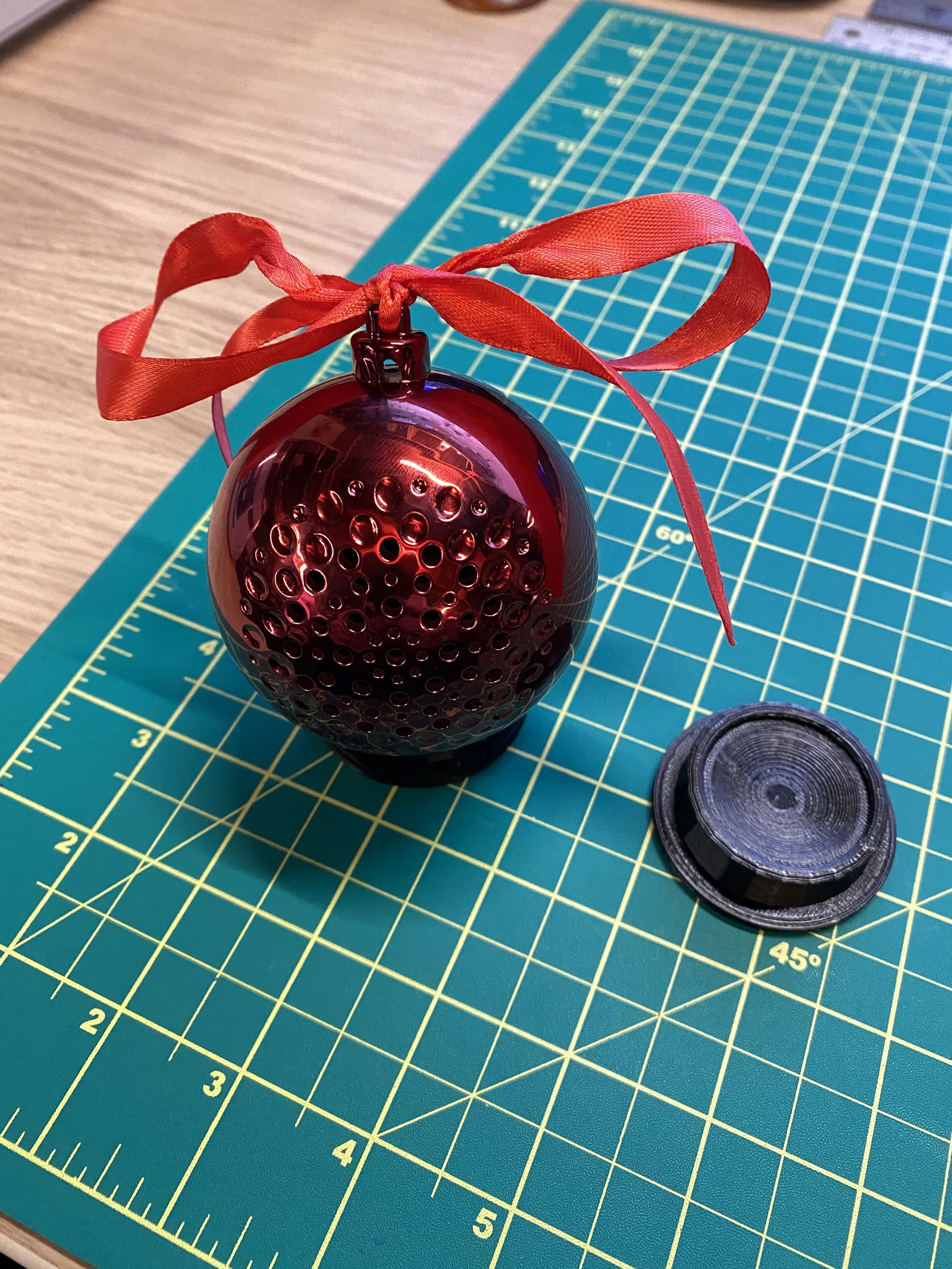 Mấy cái đồ trang trí cây thông Noel có loa Bluetooth này hơi nặng để treo lên cây thiệt. Tui làm cái đế này để có thể để lên trên lò sưởi, kệ hay gì đó.