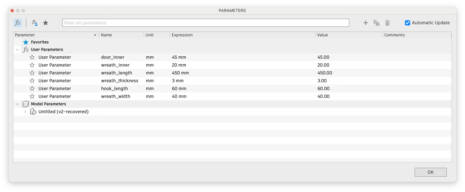 Không tìm thấy cái móc treo vòng hoa theo dạng parametric nào trên mạng, nên tôi tự làm một cái.
