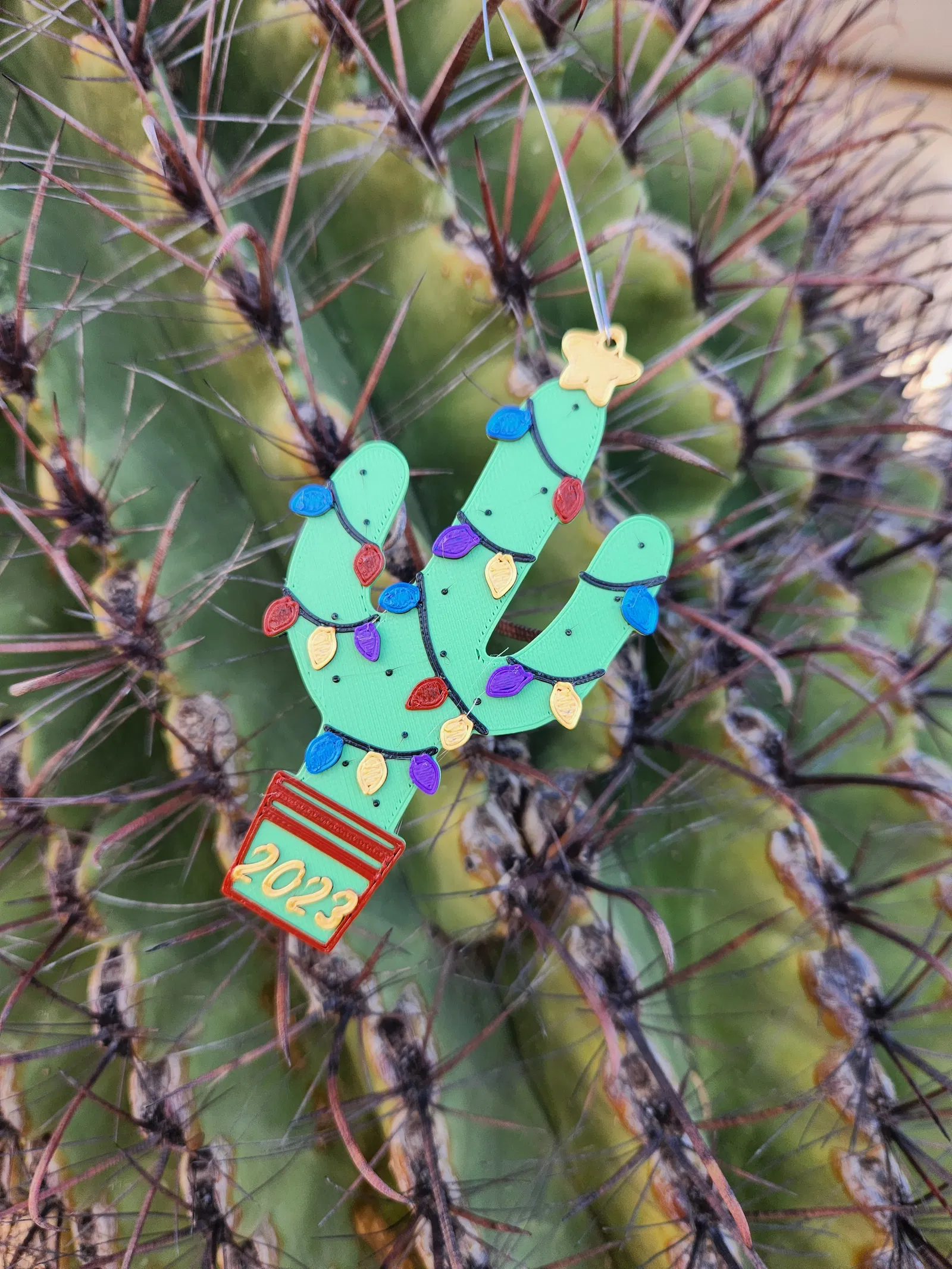 Đồ trang trí Giáng sinh cho những ai đón lễ ở vùng khí hậu ấm áp với 'cây' độc đáo. Cây xương rồng này là một món quà ý nghĩa, in bằng nhiều màu sắc khác nhau để tạo hiệu ứng bắt mắt.