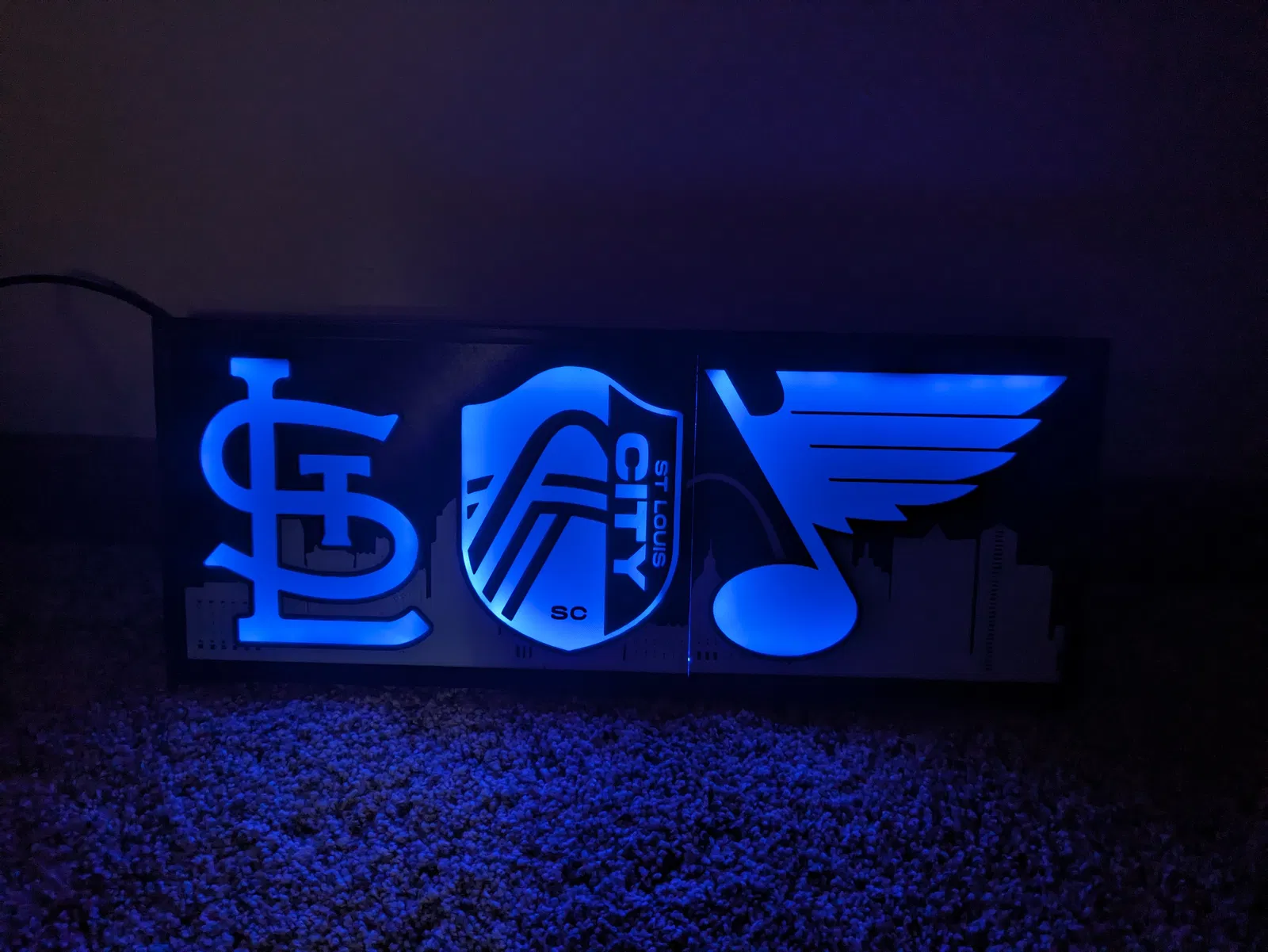 Thể hiện niềm tự hào thể thao STL của bạn với biển hiệu thể thao St. Louis này. Có logo của Cardinals, City SC & Blues cùng với đường chân trời thành phố. Lý tưởng cho quán bar, phòng khách hay phòng chơi game.