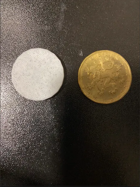 Một mô hình token có kích thước và thông số kỹ thuật giống hệt đồng 20 korun của Séc. Bản in thử nghiệm bằng vật liệu PLA, tải về và like để ủng hộ tác giả nhận Prusament.