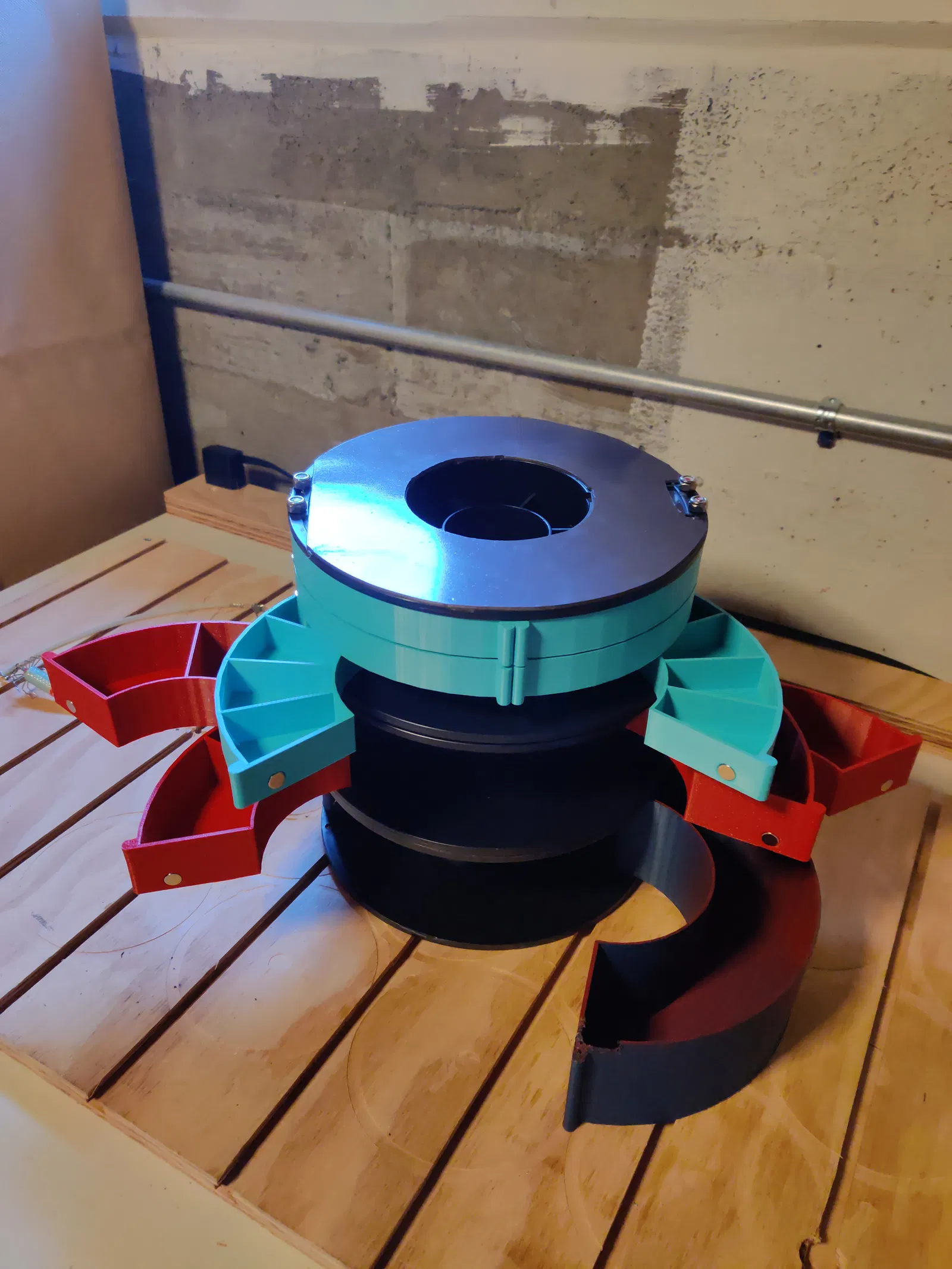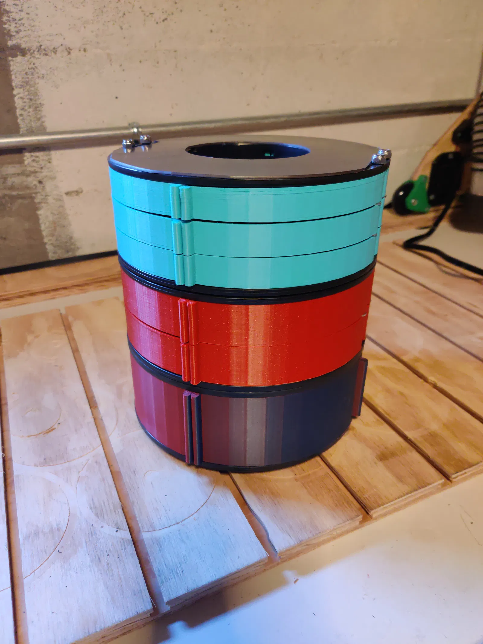 Bạn có thể cần phải làm sạch lỗ trục xoay bằng mũi khoan 11/64 inch trước khi nó lắp vừa dễ dàng. Bạn cũng sẽ cần khoan lỗ trên các cuộn dây bằng cùng một mũi khoan. Tôi đã sử dụng nam châm 8x3mm để giữ các khay đóng lại. Hầu hết chúng đều vừa khít khi chỉ cần ấn vào, nhưng một vài cái cần một chút keo siêu dính để giữ cố định.