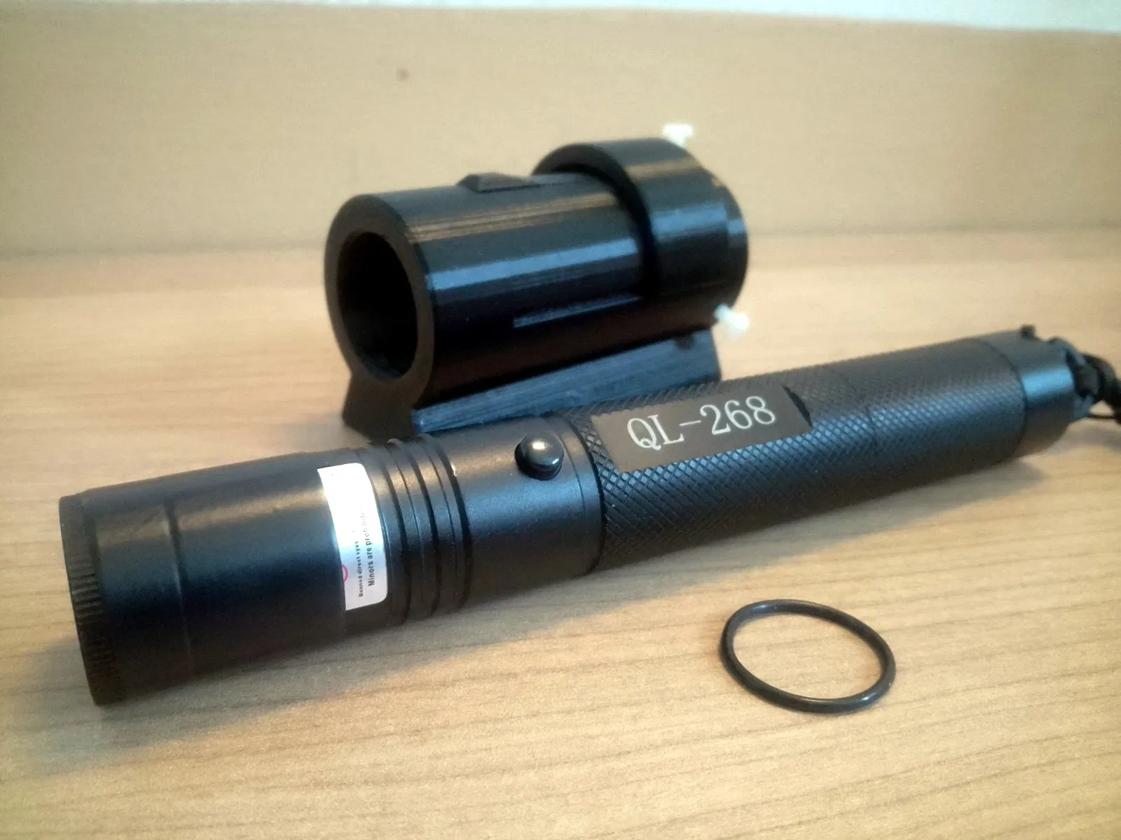 Gắn vào laser xanh QL-268 chiếu sáng liên tục có công tắc trượt. @Cần dùng O-ring 1.5-2mm x 18-20mm @Có lẽ tinh chỉnh cò súng sau khi hiệu chỉnh bằng cách dán băng keo vào thanh trượt, hoặc sửa đổi STL @In không cần support. PETG / lớp 0.2 / chu vi 3x.