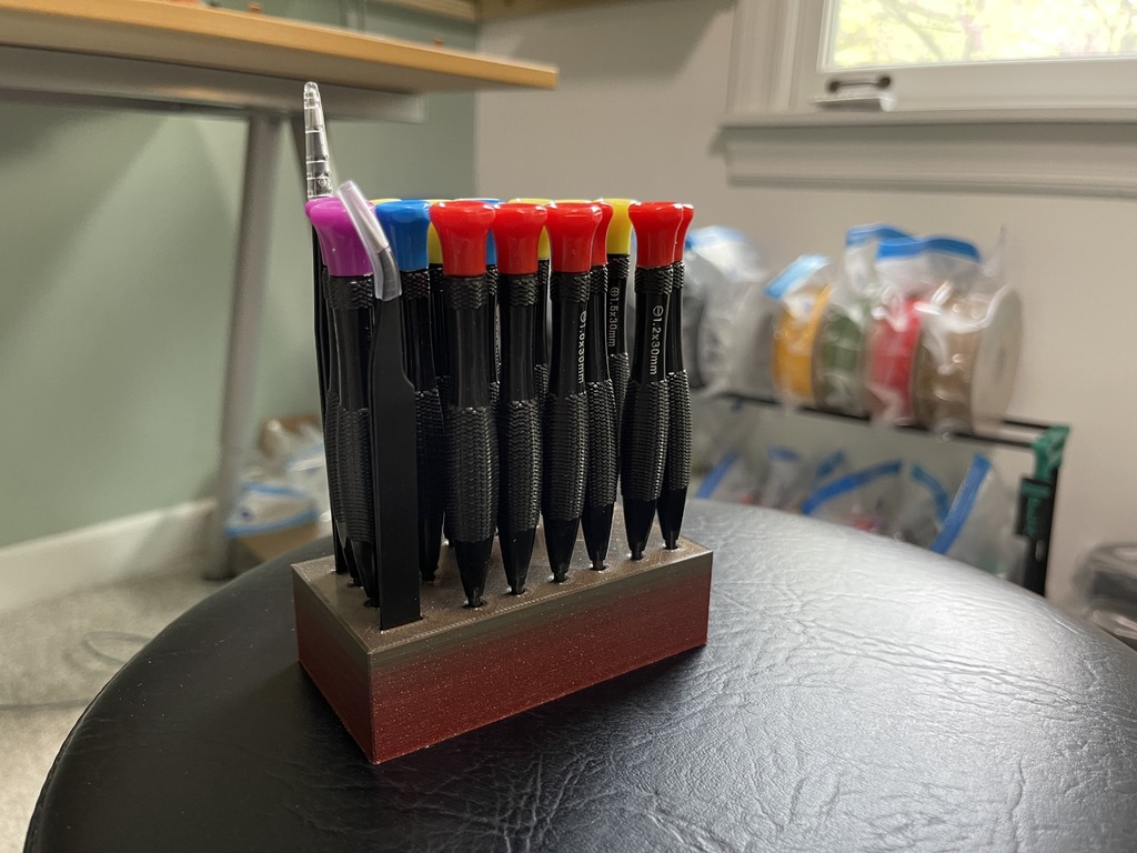 Bạn có mấy cây tua vít mini mà không biết để đâu cho gọn? Cái kệ đơn giản này sẽ giúp bạn sắp xếp chúng lại một cách ngăn nắp. Chỉ cần in ra và sử dụng thôi!