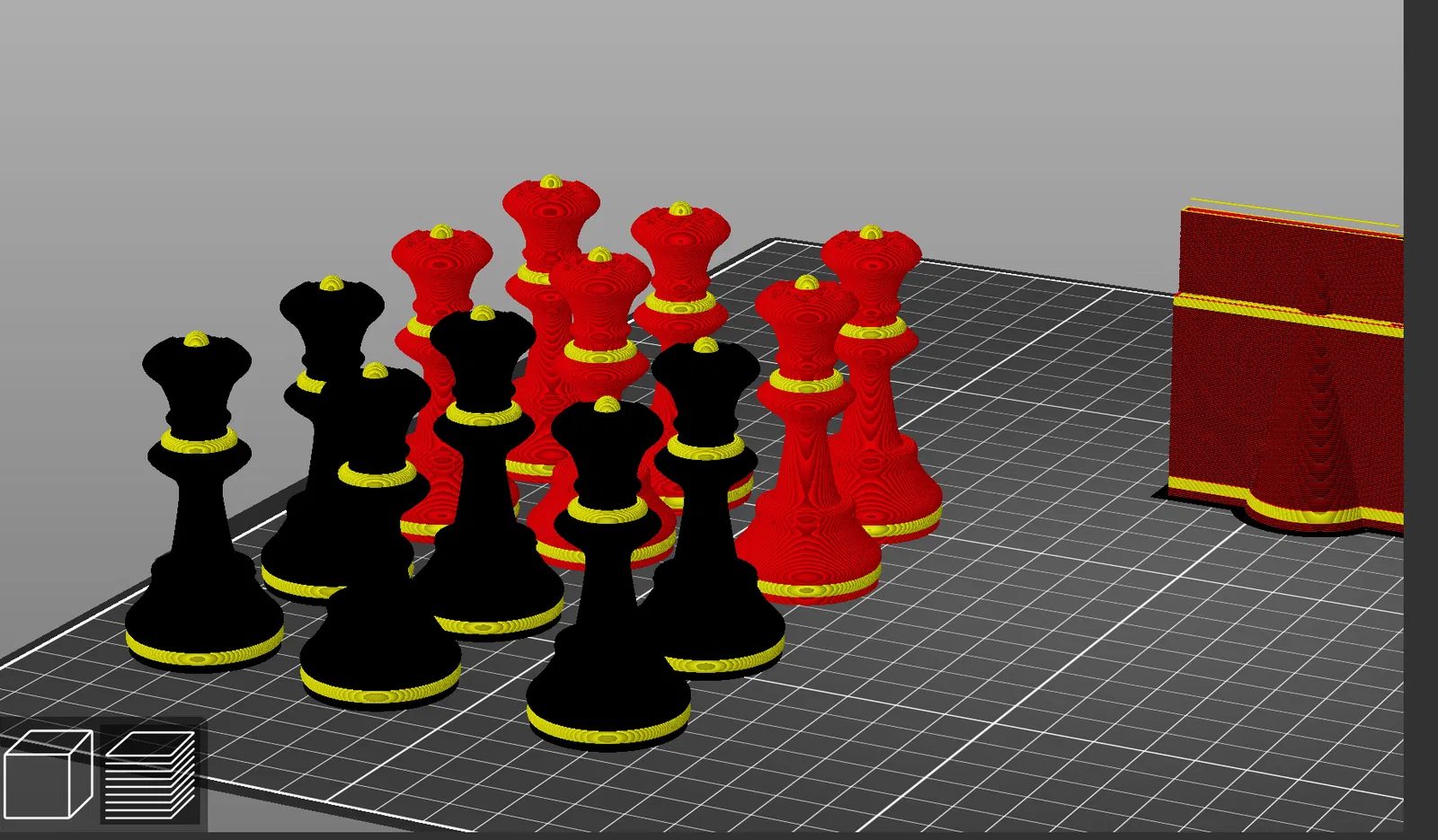 Thiết kế này để in trên máy in đa sắc, đặc biệt là XL vì kích thước. Nhưng bạn có thể thu nhỏ lại. Các quân hậu không có màu, bạn có thể dùng công cụ sơn để tô màu cho quân của mình. Tôi chọn quân đen và đỏ đơn giản với sọc vàng. Sạch sẽ và đơn giản. Chúc bạn chơi vui.