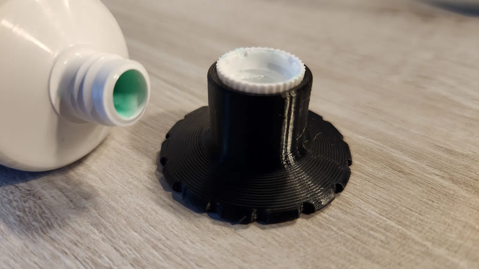 Các hãng khác cũng dùng kiểu nắp này nên đế này có thể dùng được cho nhiều loại kem đánh răng khác.