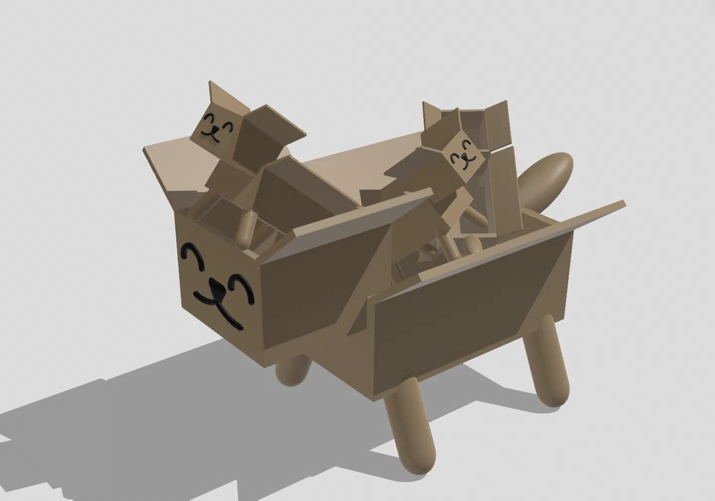 Ủa nhìn kìa, cái hộp nó kết bạn với cái gói hàng Amazon rồi kìa. Đây không phải là cái hộp bình thường đâu nha, đây là "chó hộp" đó! Nó thích chơi với mấy cái gói hàng Amazon, với lại nó cũng thích lắm khi bạn bỏ đồ gì đó vào trong bụng nó. Bạn có thể bỏ đồ chơi vào trong đó (tùy thuộc vào kích thước bạn in nó), bạn có thể trồng cây trong đó, bạn thậm chí có thể bỏ thức ăn cho chó vào cho "boss" nhà bạn ăn nữa (coi chừng nó ghen đó nha). Nhớ khoe ảnh "boss" hộp mới của bạn với mọi người nha. :)