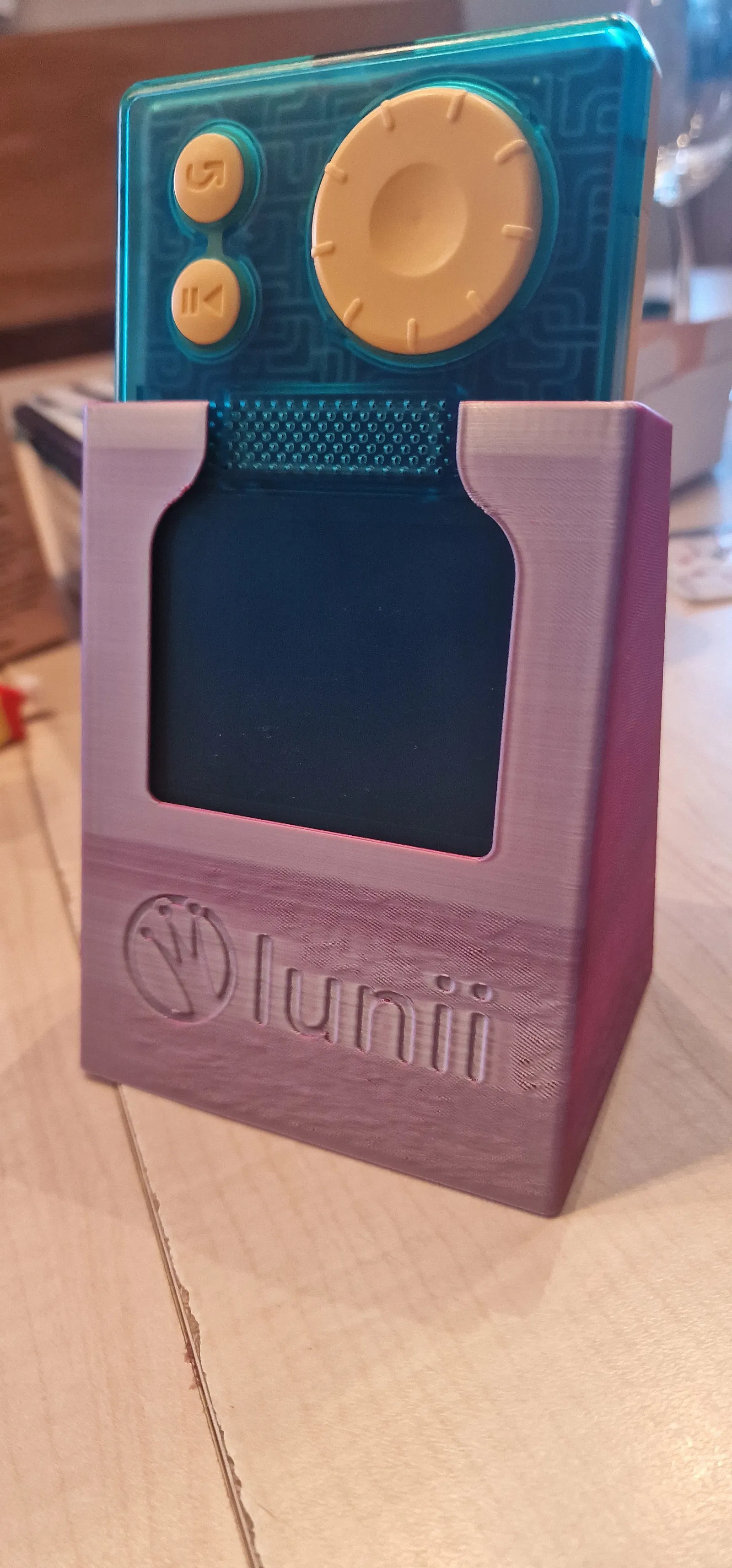 Trạm sạc cho Lunii Flam, giúp việc sạc pin cho các bé dễ dàng hơn. Phiên bản V1 sử dụng cổng USB-C zin và có lỗ thoát dây. Phiên bản V2 cải tiến với cửa sổ xem đèn LED và nắp gập dễ thao tác hơn.