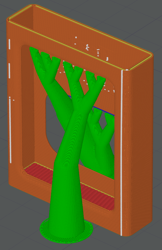 Xem hình ảnh đi kèm để biết hướng in và vị trí đặt support. Nếu gặp vấn đề về bám dính bàn in, hãy thêm brim.