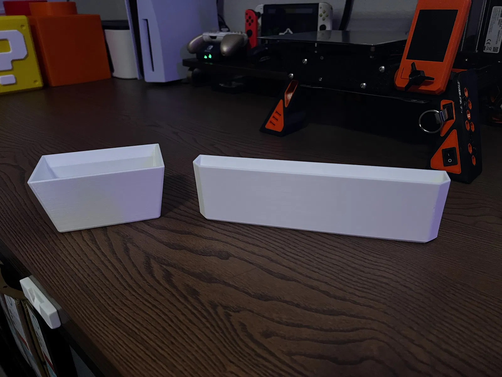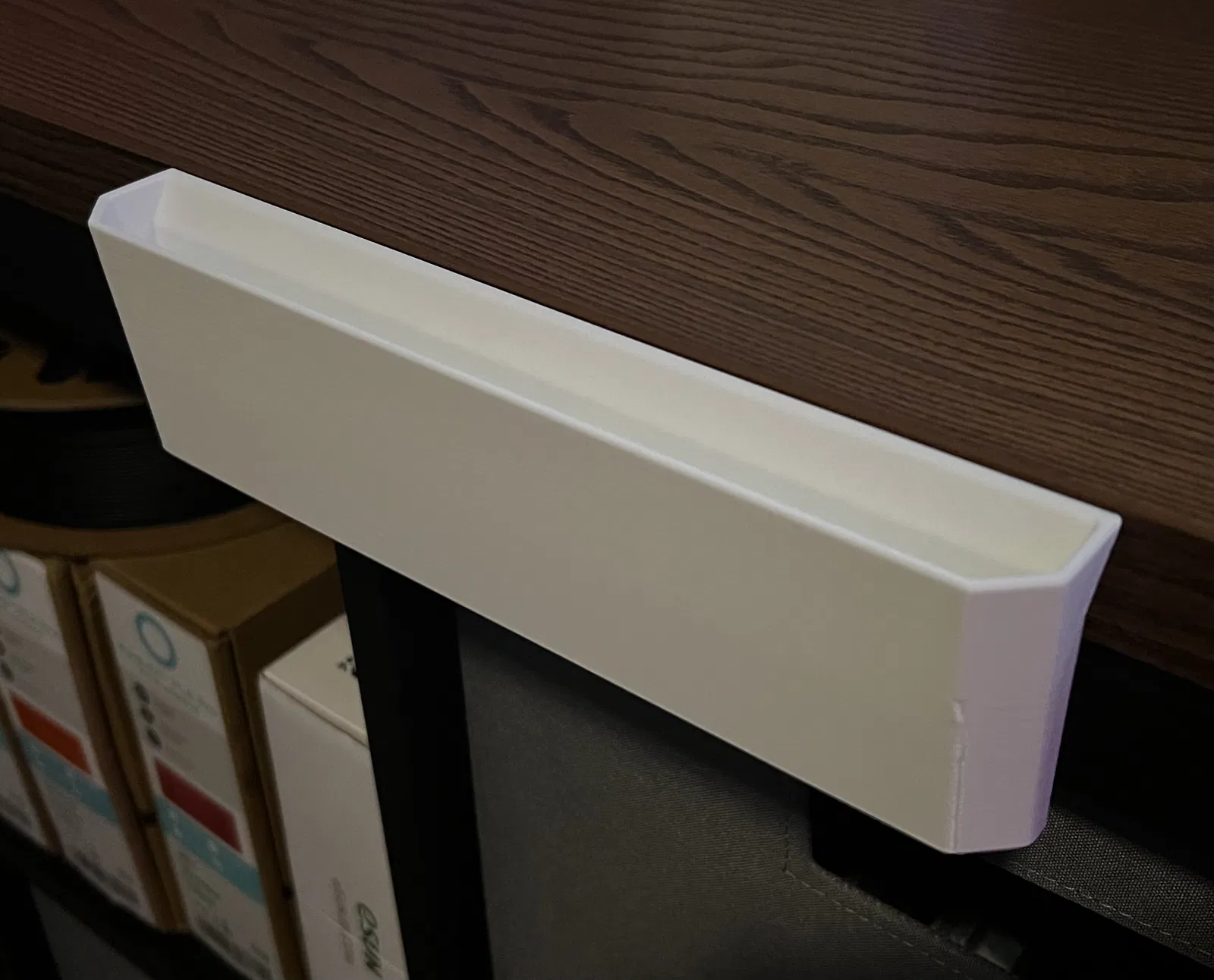 Tui đã tạo phiên bản đế mới với phần lưng sâu và rộng hơn để dán băng keo hai mặt. Điều này giúp đế chắc chắn hơn, ít bị lung lay và thùng rác cũng sát với bề mặt hơn.