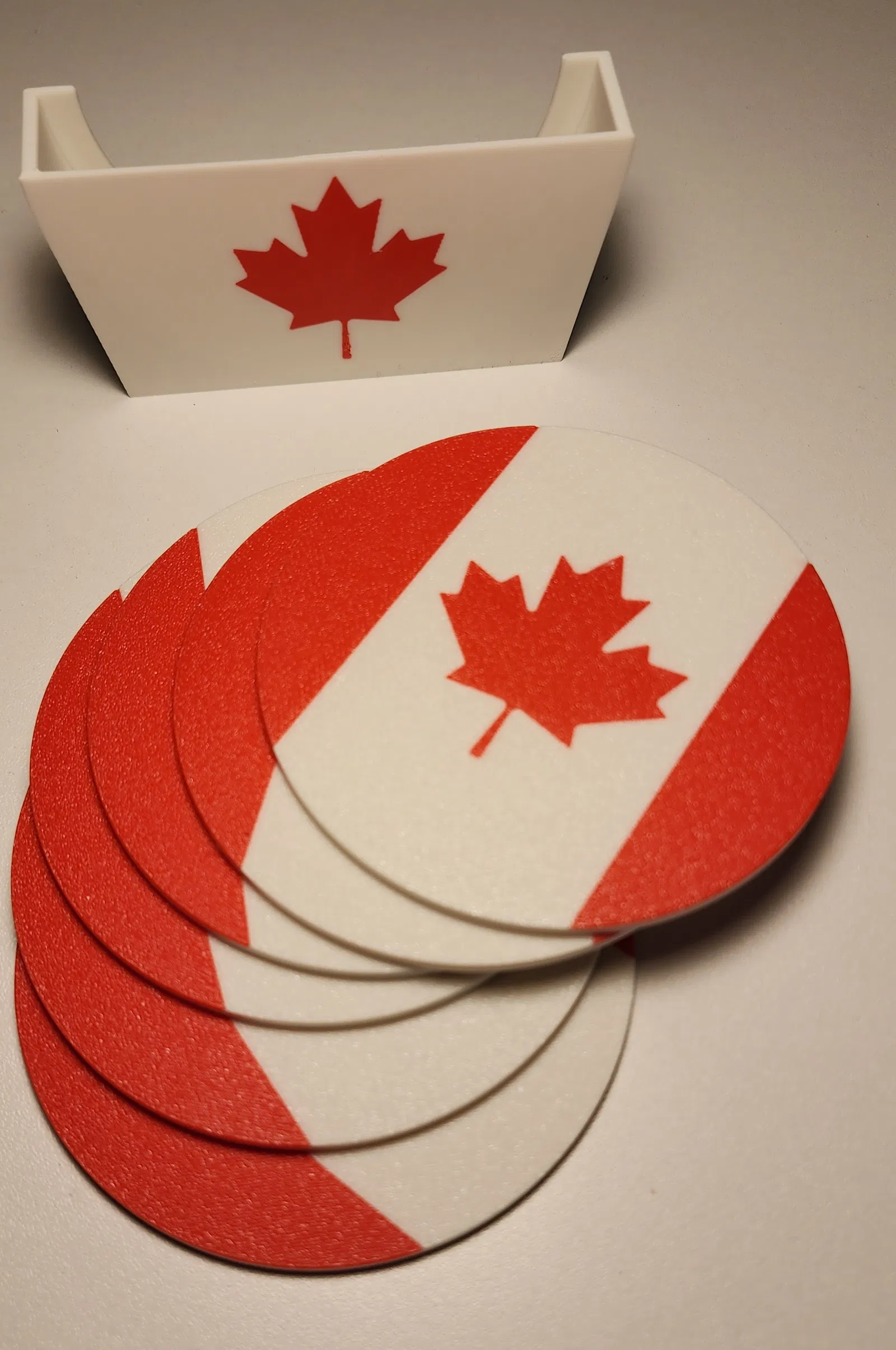 Bộ đế lót ly đơn giản, dễ in hình cờ Canada. Tuyệt vời làm quà tặng. Thiết kế tận dụng bề mặt nhám PEI, có đế cắm in nghiêng, tối ưu làm mát và bề mặt đẹp.