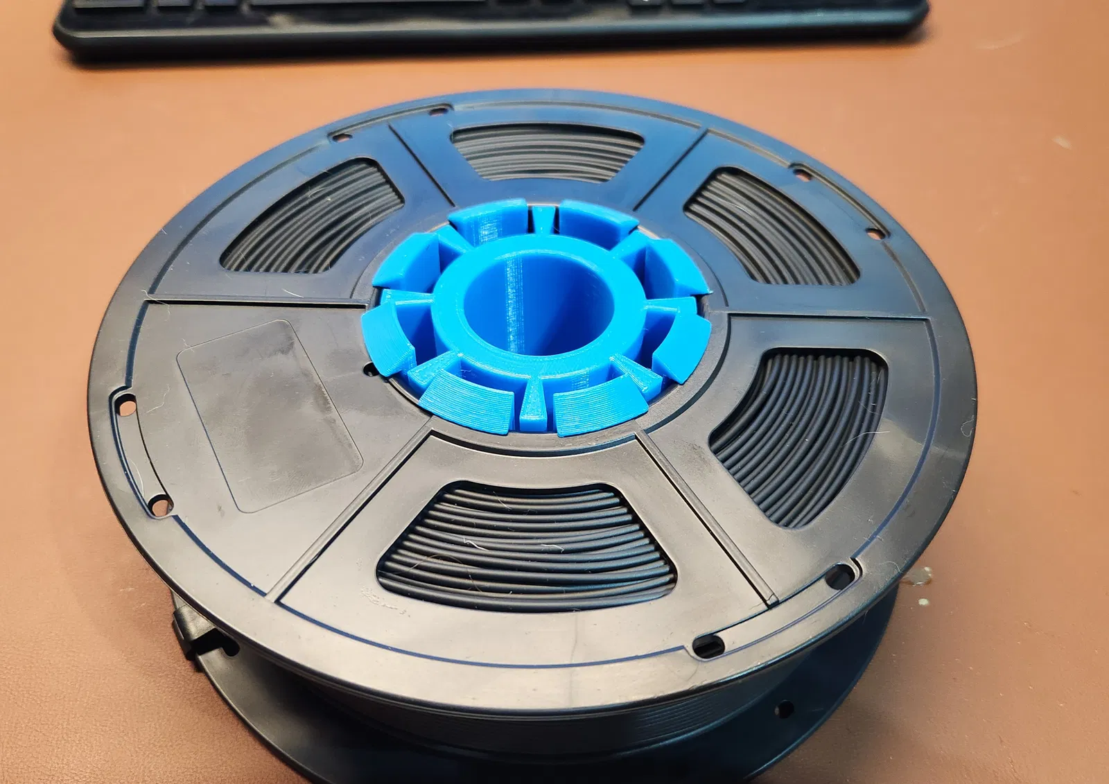 Cục trung tâm 1 mảnh cho cuộn dây Tecbears, vừa khít với tay giữ cuộn dây Prusa tiêu chuẩn. Dễ dàng lắp đặt và tháo rời, in bằng PLA với hỗ trợ cho kẹp. Lựa chọn thay thế PETG nếu cần độ bền cao hơn.