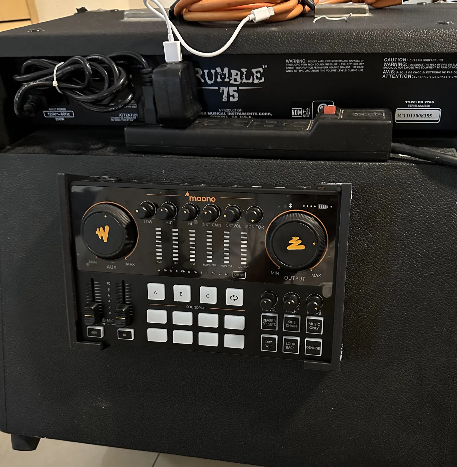 Ba tui cần cái đế để gắn cái sound card của ổng lên cái loa cho tiện vận chuyển. Gắn con Maono AME2 này là hết bài luôn.