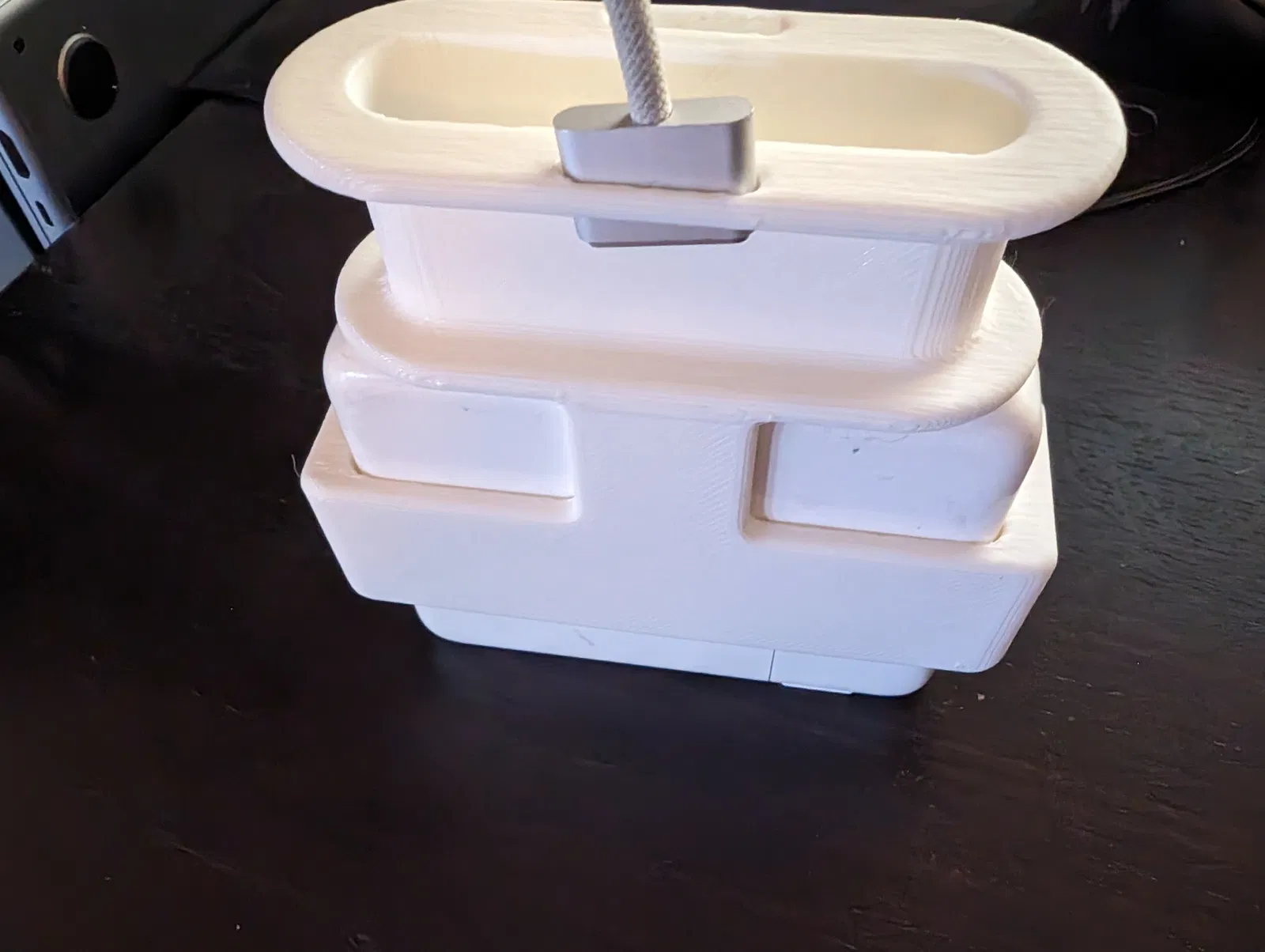 Có thể in theo chiều dọc để giữ củ sạc chắc chắn hơn, nhưng tôi đã in của mình theo chiều ngang với nhiều giá đỡ (supports) cho phần nhô ra lớn.