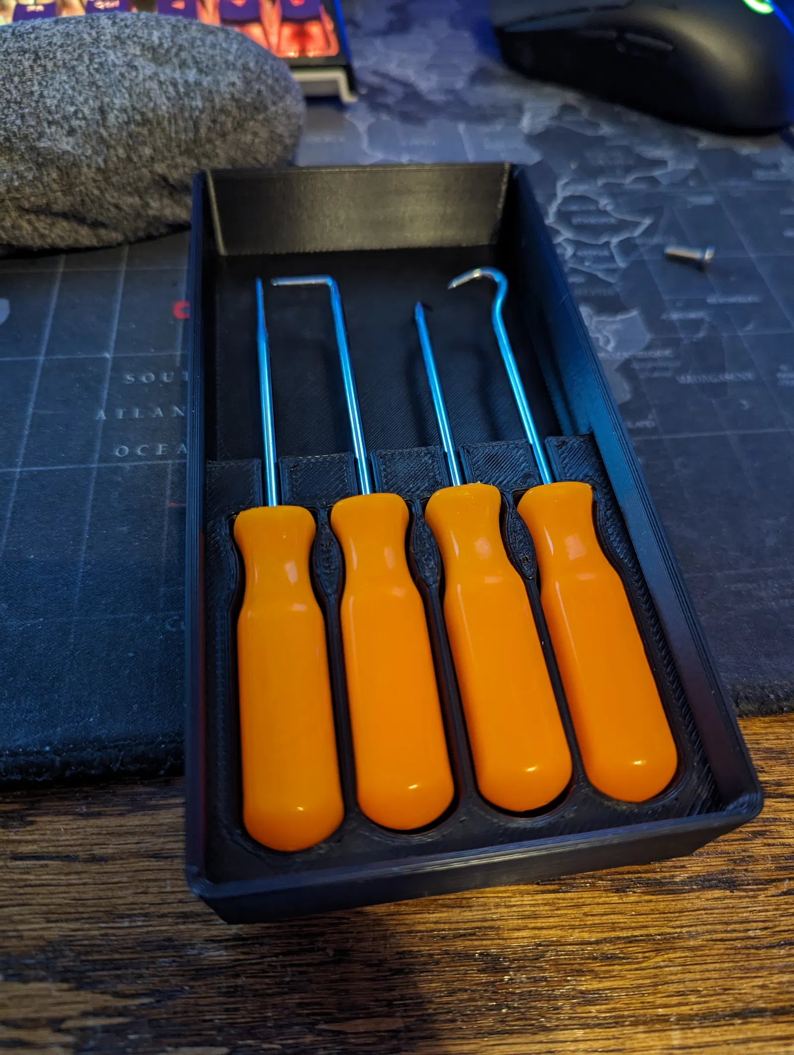 Thiết kế này giống hệt mẫu cũ, chỉ bổ sung thêm các lỗ nam châm ở đáy để dễ dàng gắn vào bề mặt kim loại. Cực kỳ tiện lợi để giữ các dụng cụ nhỏ của bạn luôn gọn gàng và trong tầm tay, đặc biệt hữu ích cho anh em hay làm việc với các loại móc và dụng cụ lấy ráy tai.
