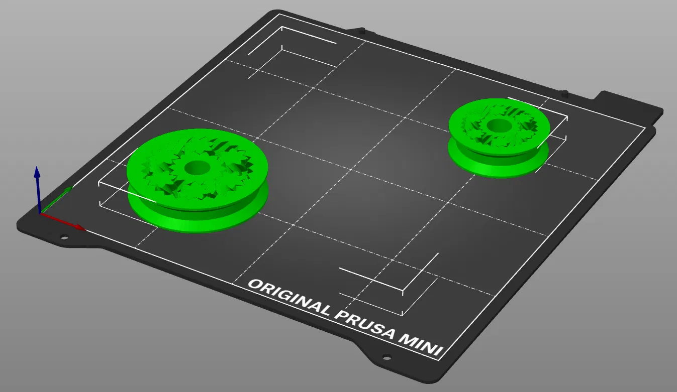 Tôi đã tải lên hai tệp 3mf với cài đặt nhúng cho PrusaSlicer. Cả hai tệp đều phải được in hai lần cho một bộ đầy đủ, với tổng cộng khoảng 18 giờ và 200g sợi. Tôi đã sử dụng 4 lớp vỏ để tăng độ bền. Nếu bạn muốn in cả hai ròng rọc cùng lúc, hãy sử dụng Tùy chọn đầu ra - Hoàn thành từng đối tượng riêng lẻ (tệp 3mf đã đặt điều đó). Tôi đã sử dụng chiều cao lớp 0,2mm và đầu phun 0,4mm với sợi PLA Prusament tái chế.