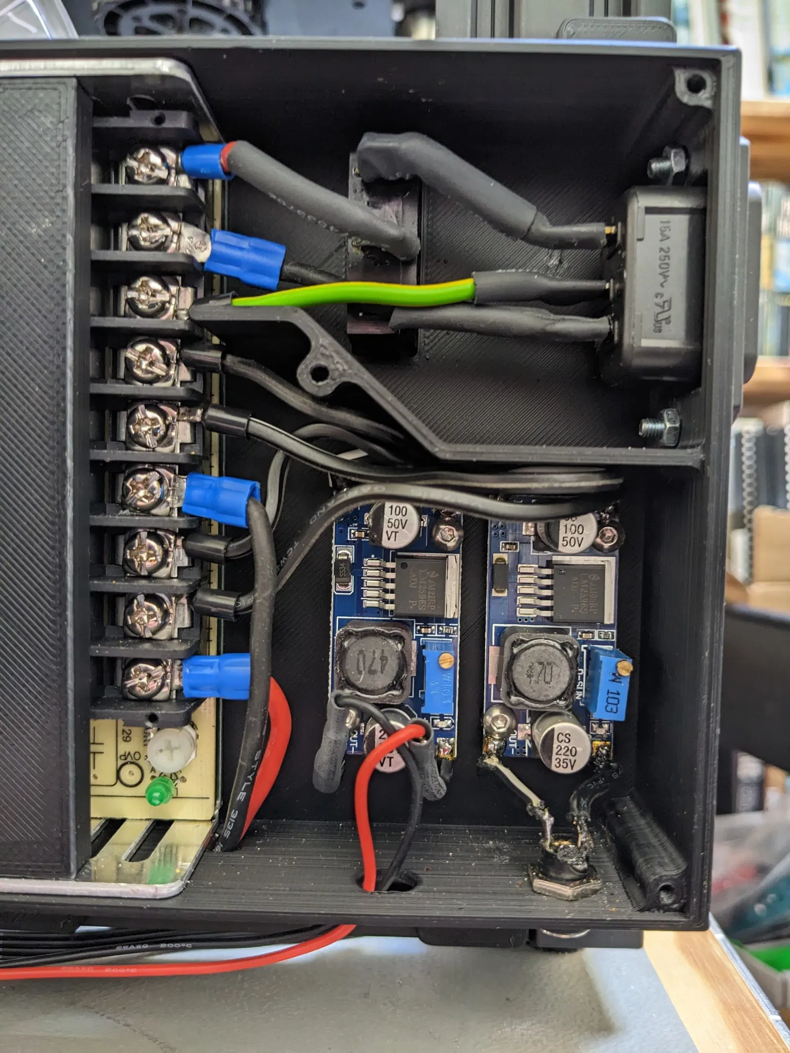 • Phần giá đỡ ở đầu nguồn điện AC khá chật để lắp dây điện AC và công tắc. Mình khuyên bạn nên cách điện tất cả các khu vực lộ ra bằng ống co nhiệt.
