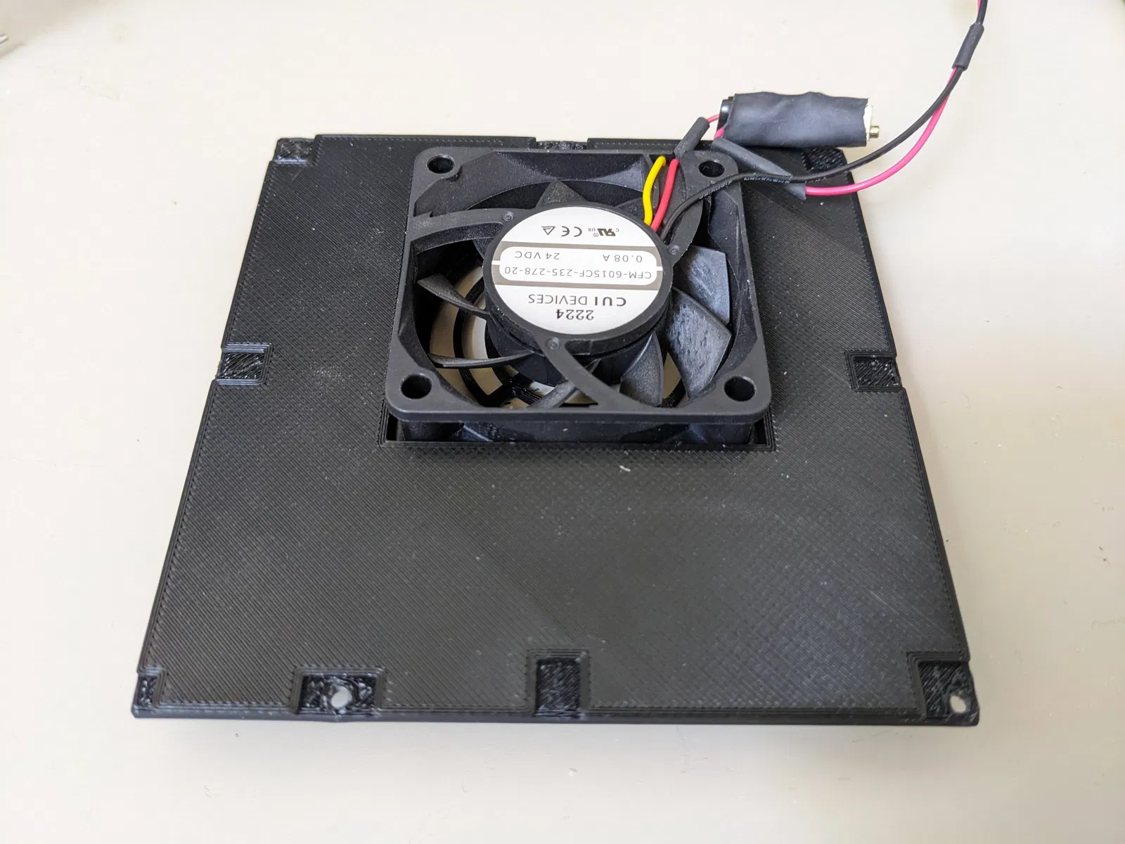 • Các lỗ gắn trên lưới che quạt in 3D có thể hơi chật, và cần được khoan rộng ra một chút nếu bạn dùng vít tự taro lớn đi kèm quạt.