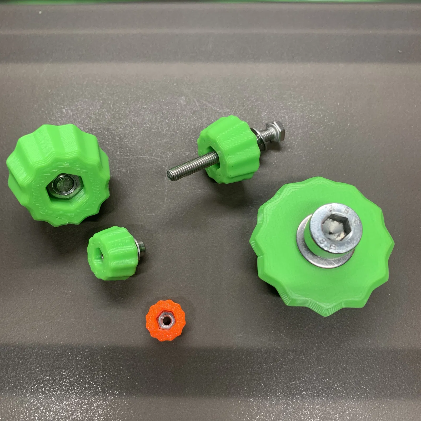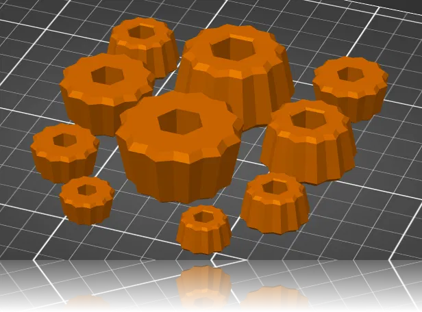 Tuyển tập các núm vặn tay cho vít và đai ốc lục giác, đủ các kích cỡ từ M3 đến M8. Tối ưu cho in ấn với ABS, đầu phun 0.6 và lớp cắt 0.3. Có cả hai chiều cho bạn lựa chọn. Chúc mọi người in ấn vui vẻ!