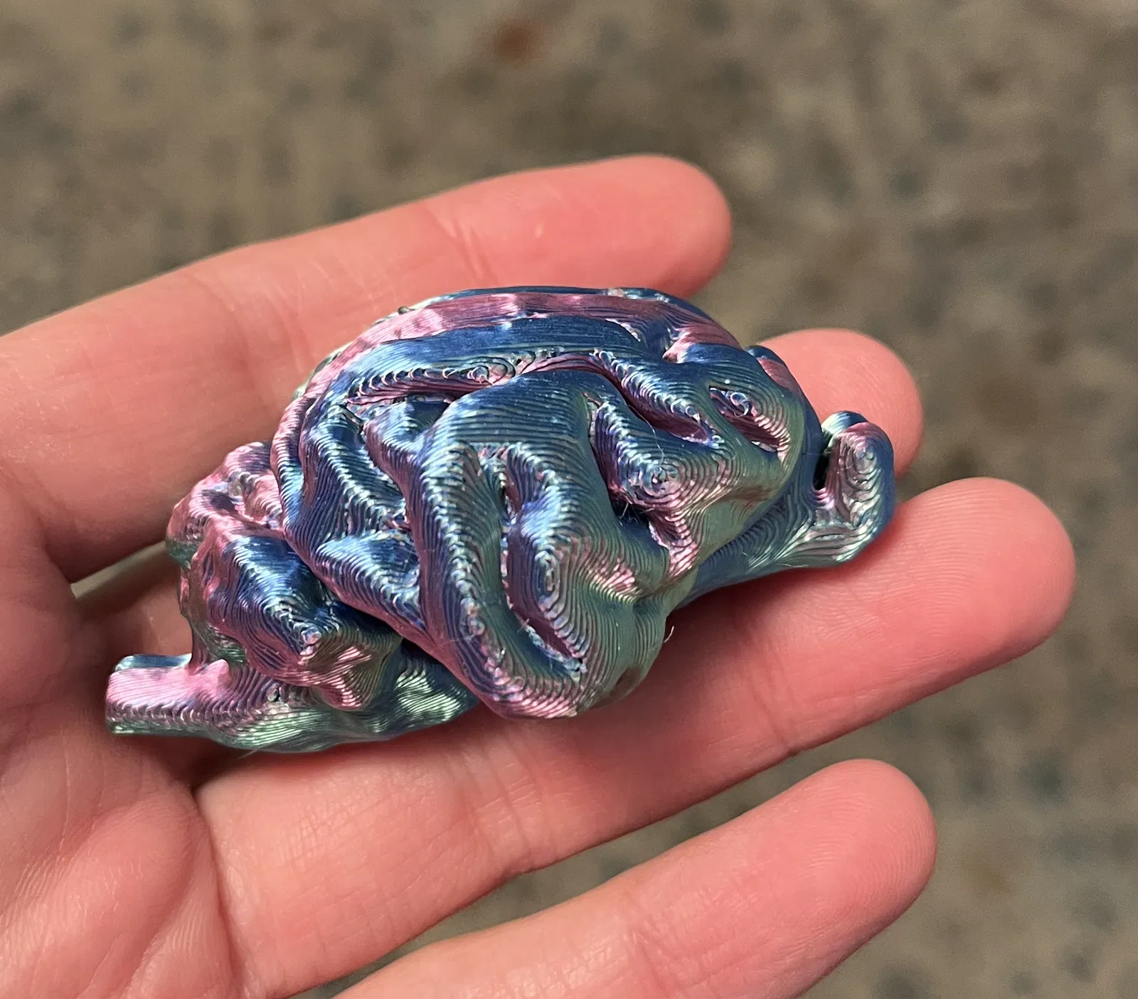 Mô hình bộ não mèo kích thước thật, chẻ đôi, với một ngăn chứa ở giữa (kích thước 6.4mm x 24.58mm x 22.53mm). Các lỗ tròn trên mỗi nửa chứa nam châm 12x1mm (1 viên ở một bên và 2 viên ở bên kia) để giữ hai nửa bộ não dính vào nhau. Có thể gấp tiền đô la để bỏ vào ngăn chứa này. In cần có support.
