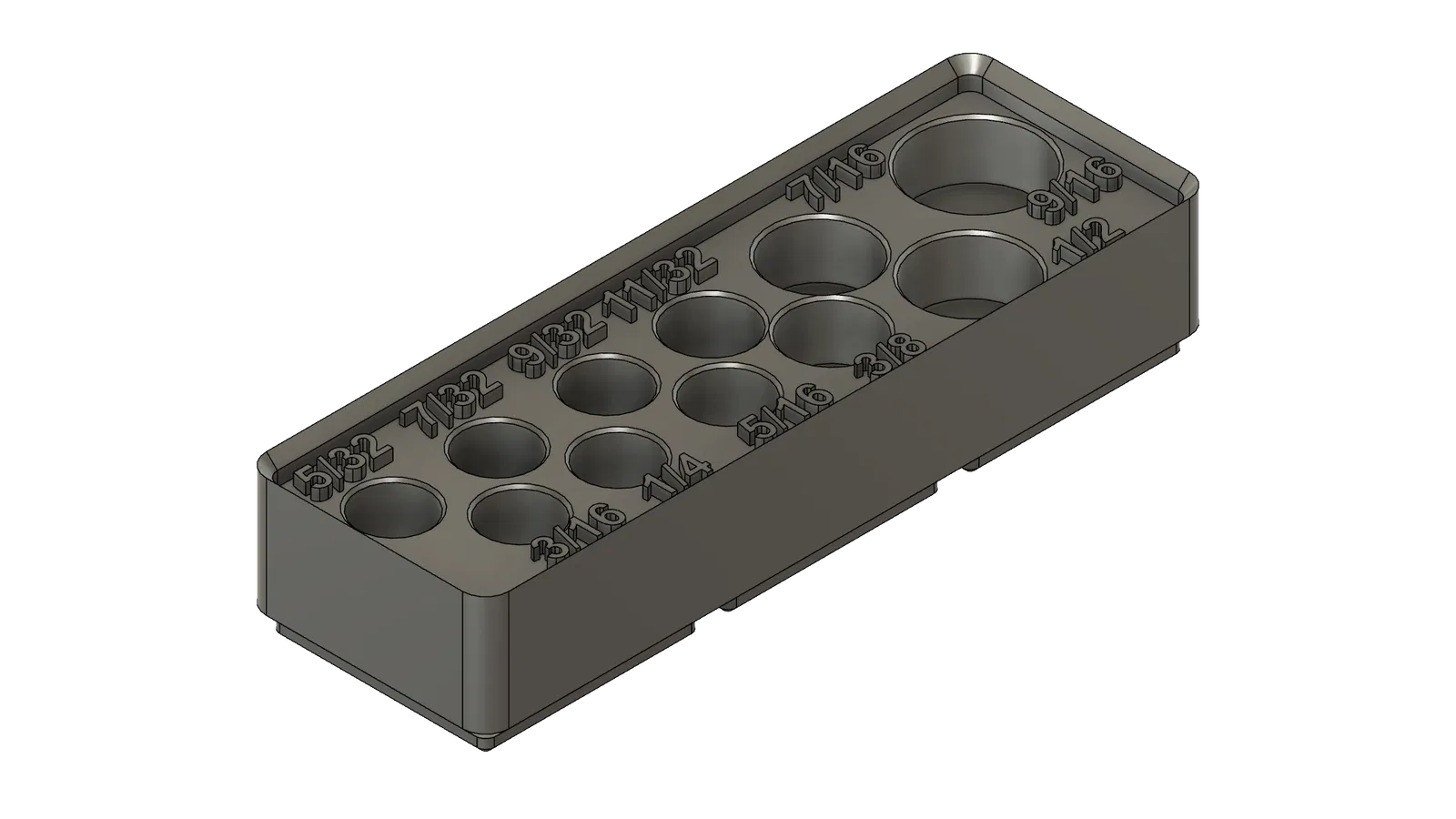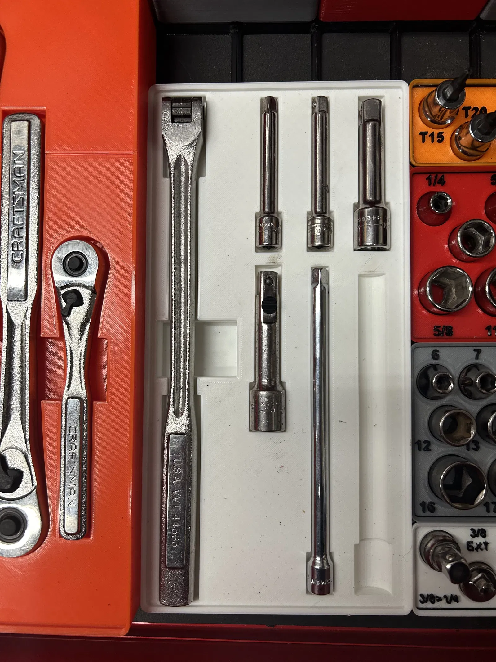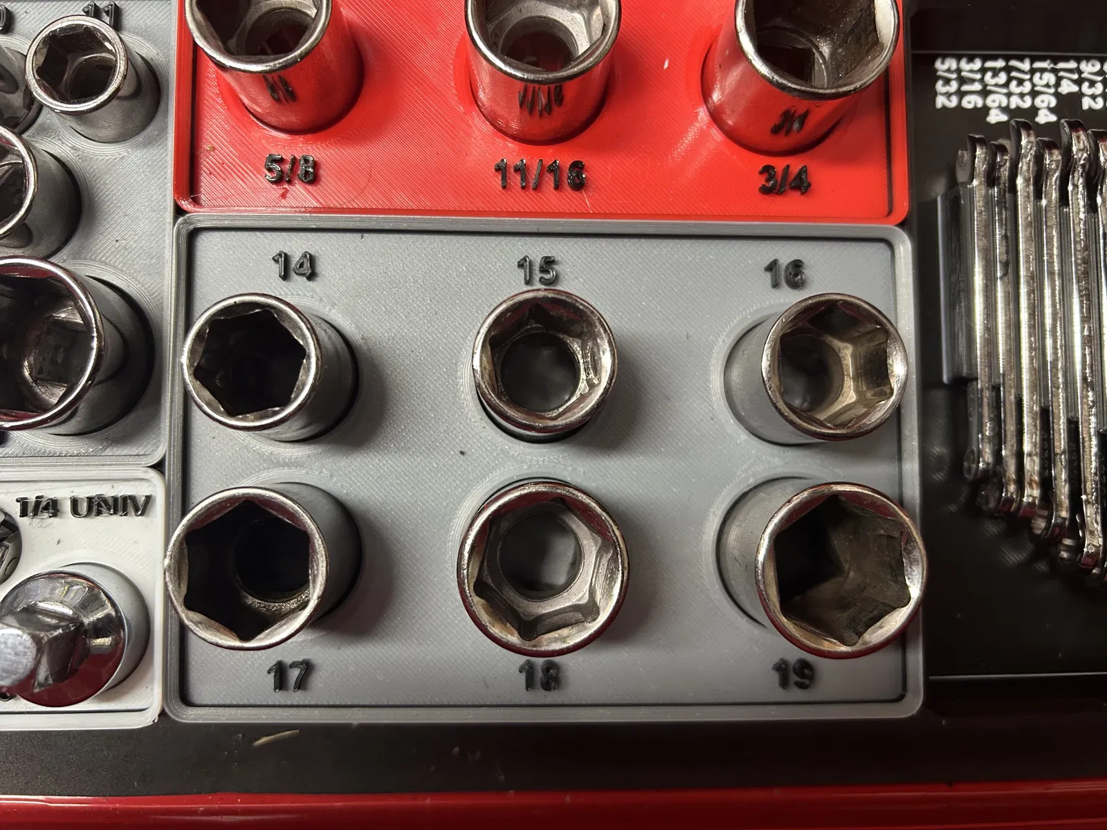 Bộ khay đựng các loại tuýp khẩu của Craftsman và Pittsburg, thiết kế theo chuẩn Gridfinity. Phù hợp cho các cỡ tuýp 1/2", 3/8", 1/4" và cả các phụ kiện như đầu nối, khớp nối, tay vặn. Giúp sắp xếp dụng cụ gọn gàng, dễ tìm.