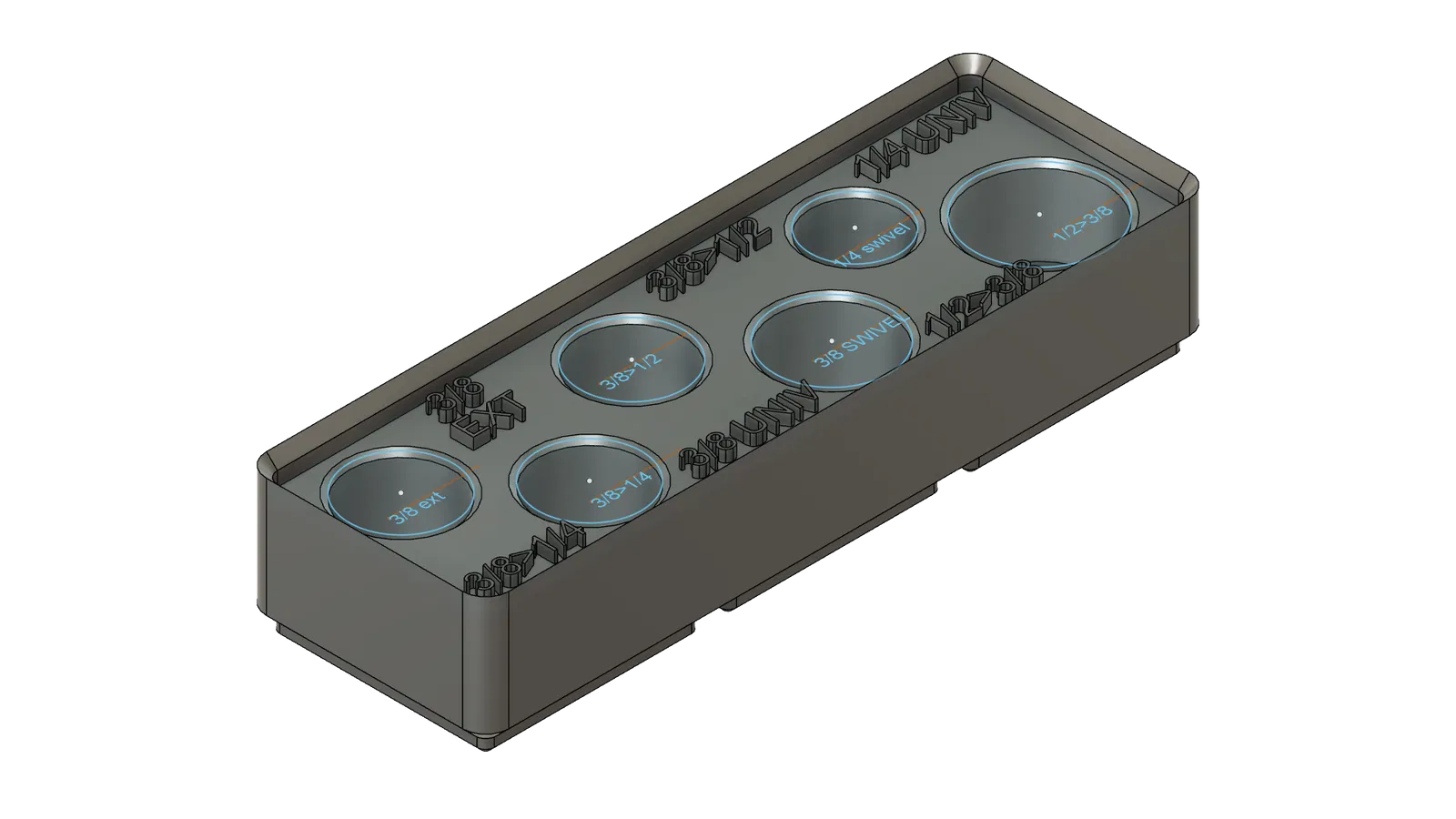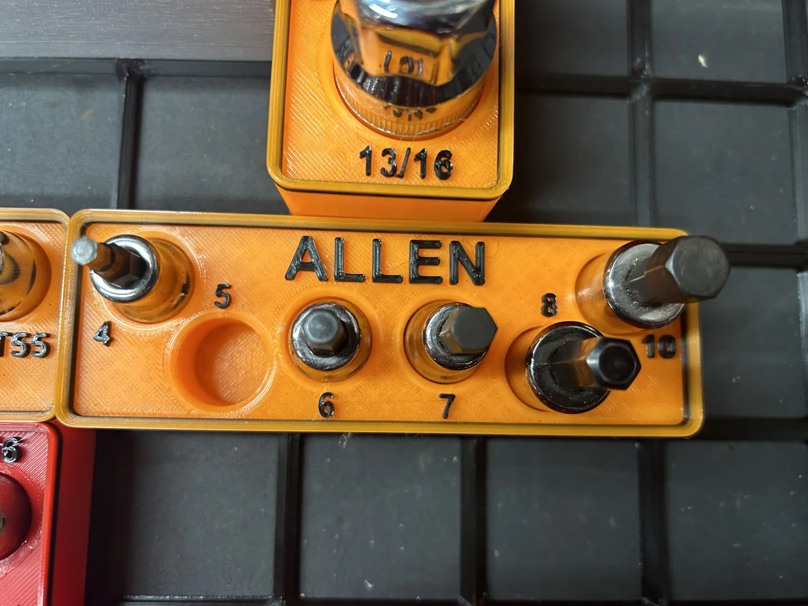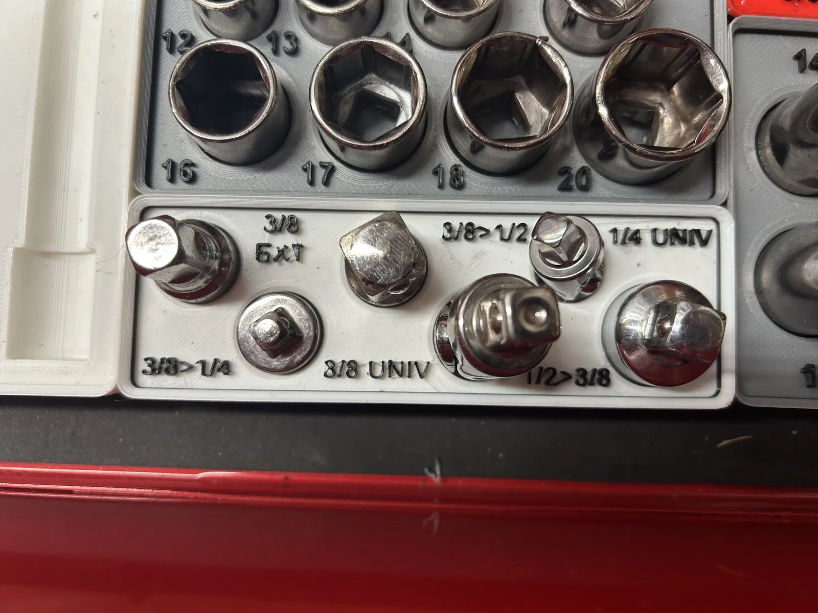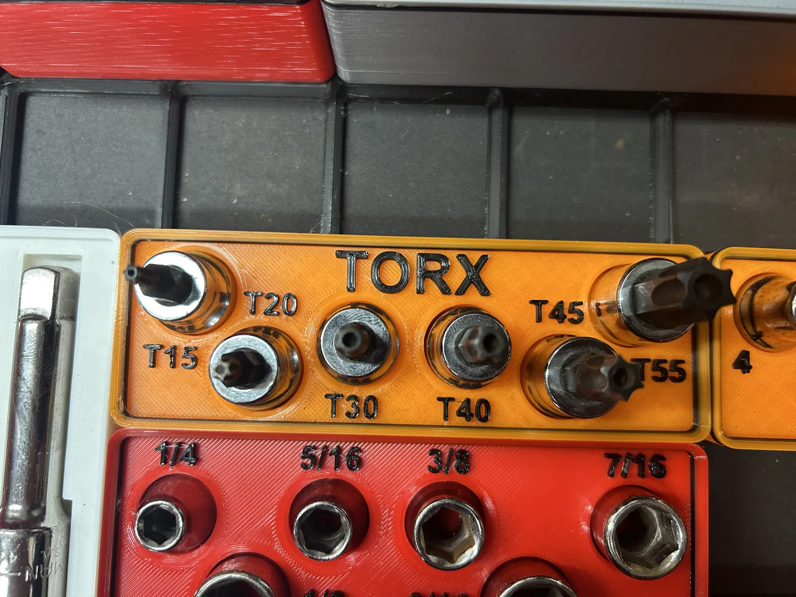 Bộ khay đựng các loại tuýp khẩu của Craftsman và Pittsburg, thiết kế theo chuẩn Gridfinity. Phù hợp cho các cỡ tuýp 1/2", 3/8", 1/4" và cả các phụ kiện như đầu nối, khớp nối, tay vặn. Giúp sắp xếp dụng cụ gọn gàng, dễ tìm.