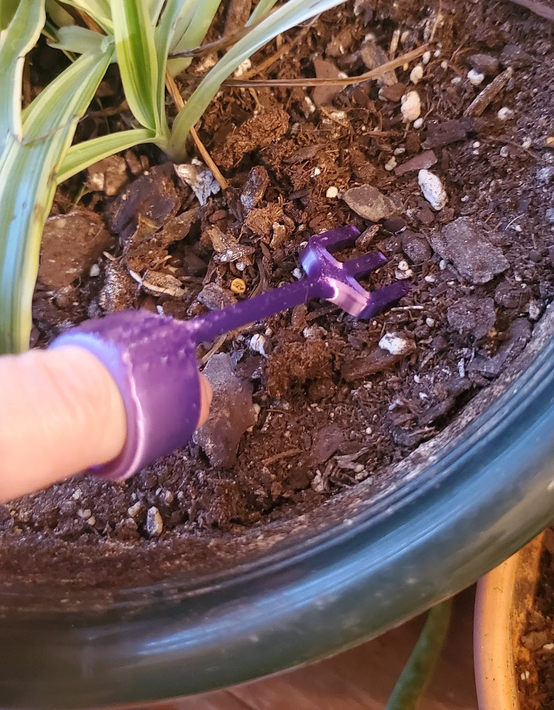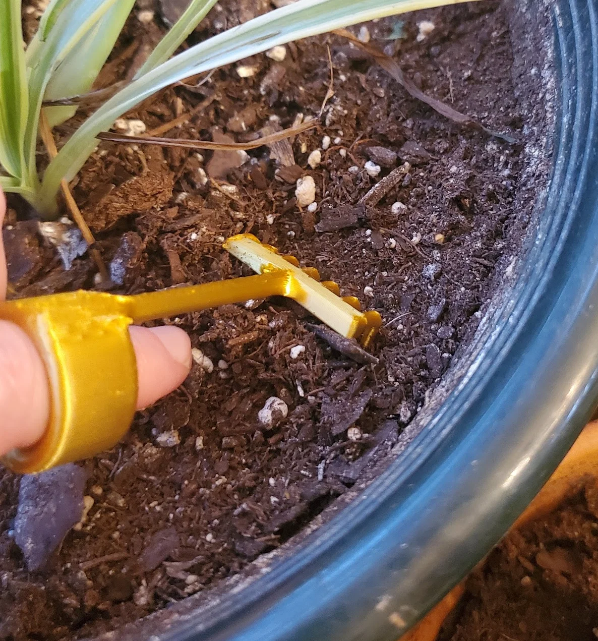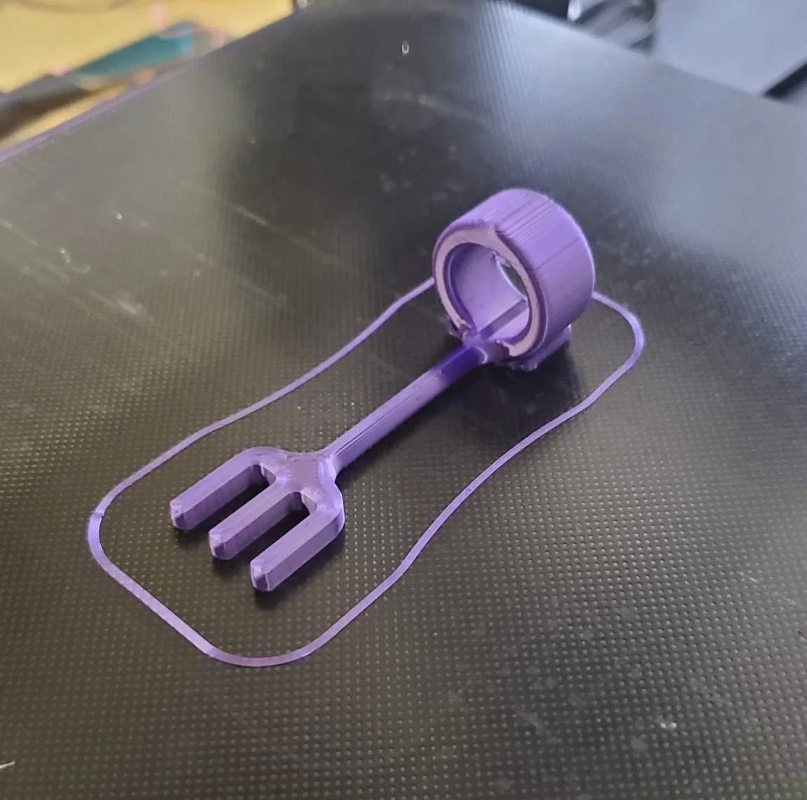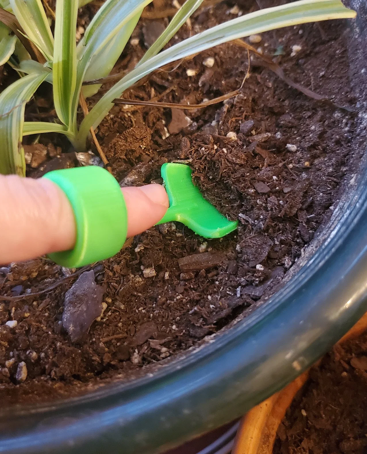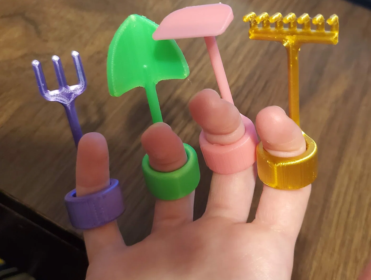 Một bộ làm vườn mini dành cho ngón tay, bao gồm cào, cuốc, xẻng và nĩa, để bạn chăm sóc cây cảnh của mình! Mình có dùng brim cho cái cuốc và in tất cả các bộ phận với phần cán áp sát vào bàn in.