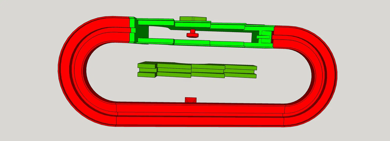 - Lắp các Đường cong Trên và Dưới vào các đầu tương ứng của Phần Dốc Thẳng. [Tùy chọn: Dán bằng Keo CA, hoặc để nguyên không dán để tháo rời sau này.]