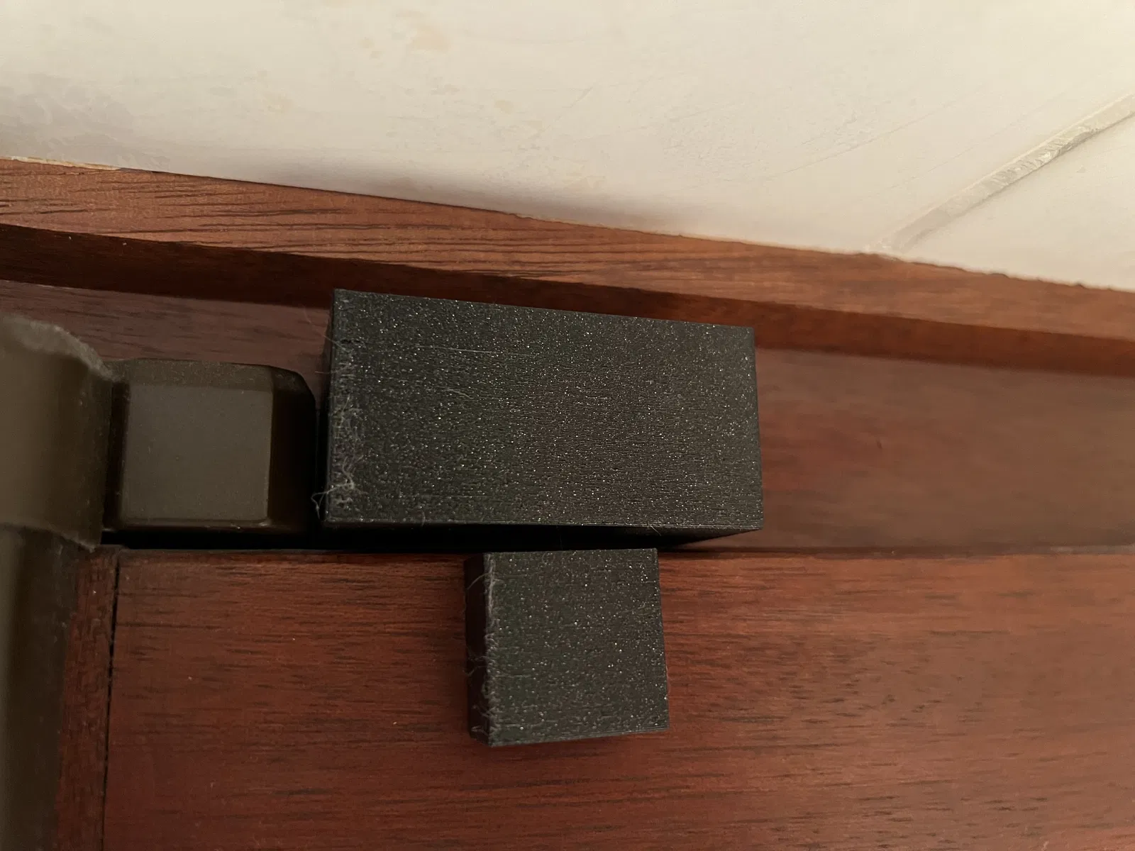 Một cái vỏ/hộp/giá đỡ nhỏ cho cảm biến liên lạc Eve Door & Window Thread.