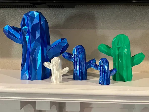 Mô hình Xương Rồng Low Poly được decimate còn 500 faces. Có cả video build trên Tested.com. Tui đã in thử nhiều tỷ lệ khác nhau và chia sẻ kinh nghiệm với các loại PLA.
