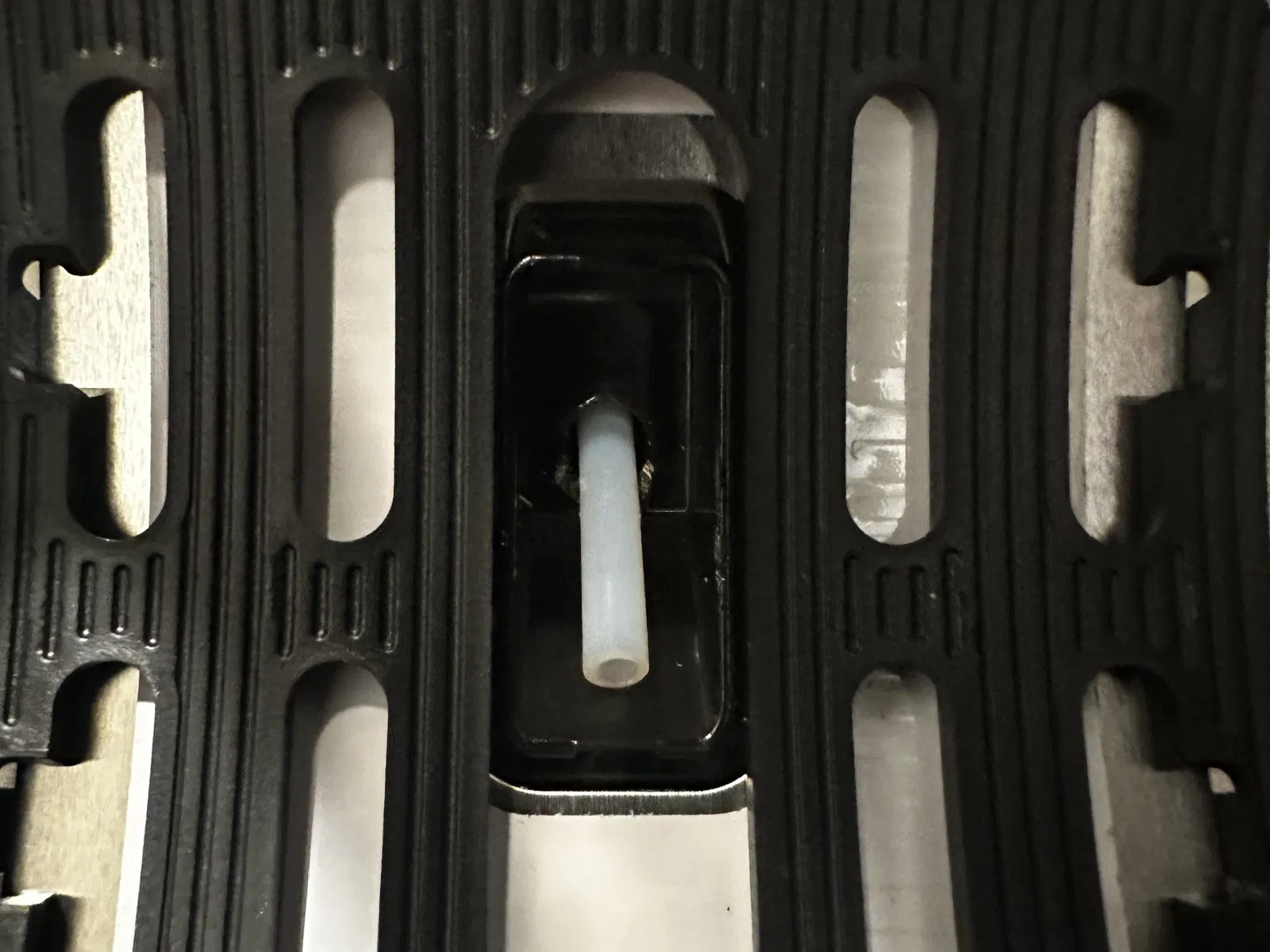 Lỗ trên nắp máy sấy cần được làm nhẹ một chút để ống PTFE có thể vừa mà không bị cản trở.