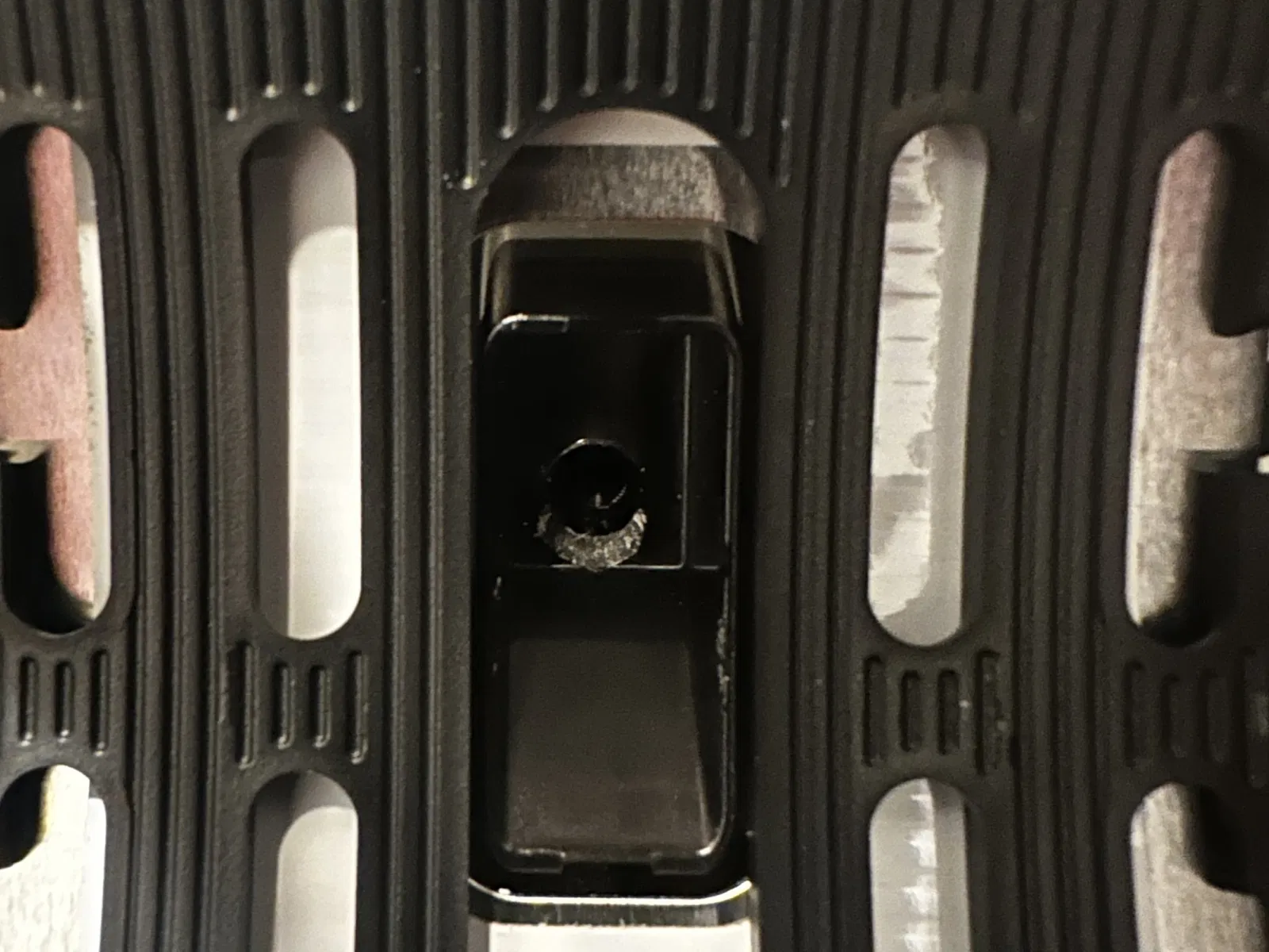 Lỗ trên nắp máy sấy cần được làm nhẹ một chút để ống PTFE có thể vừa mà không bị cản trở. Xem hình ảnh để biết chi tiết.